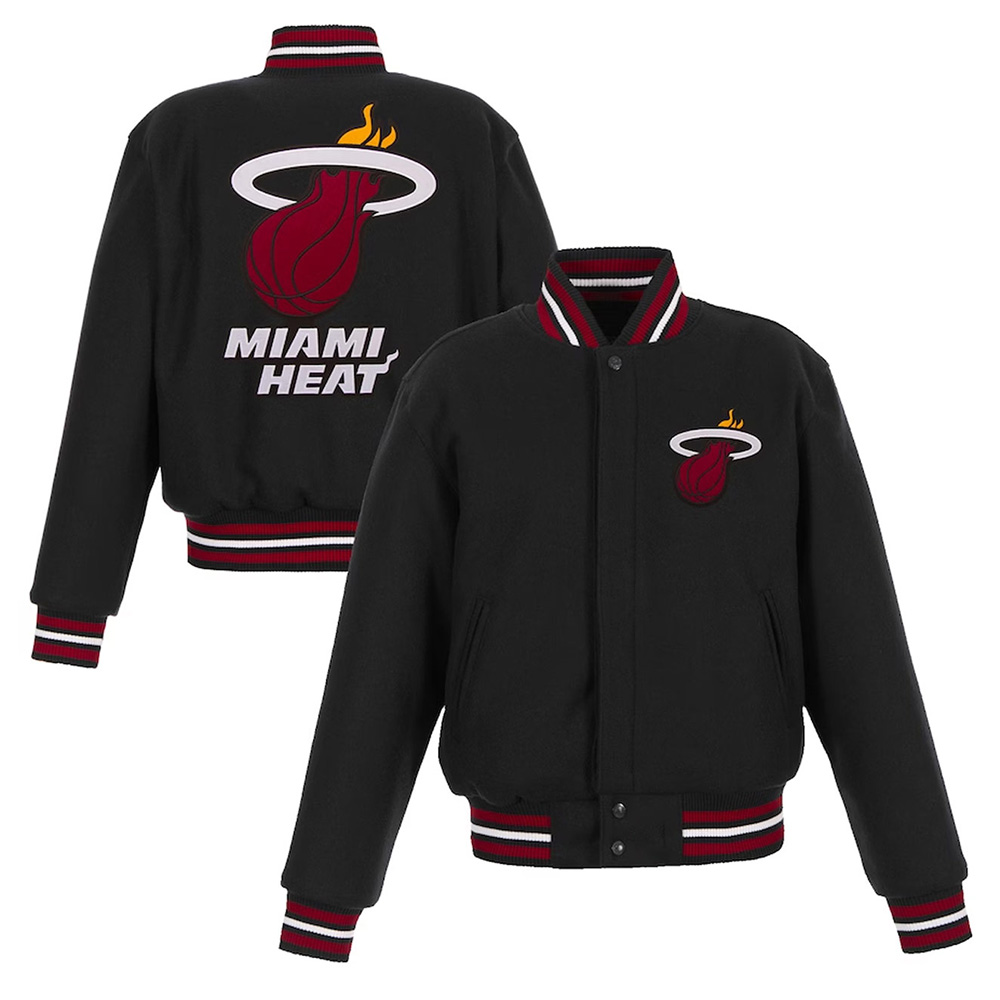 Miami Heat Embroidered Logo Black Full-Zip Wool Varsity Jacket