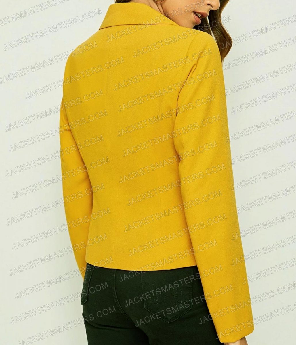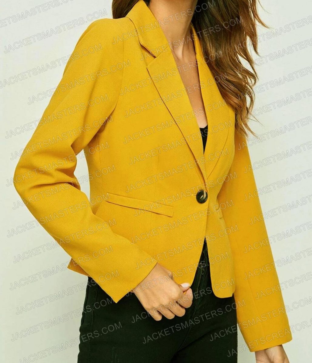 The Emily Cooper blazer is made from high-quality wool blended. The blazer is available in a glorious yellow color which gives it an innovative and attractive look. The collar of the blazer is lapel style. It has a one buttoned front closure. A soft viscose inner lining of the blazer keeps you warm and relaxed. The sleeves of the Lily Collins Emily in Paris Season 02 yellow blazer are long ends with buttoned cuffs. The fine quality stitching of the Emily Cooper blazer makes it durable and comfortable to wear. The blazer is an ideal choice for parties.
