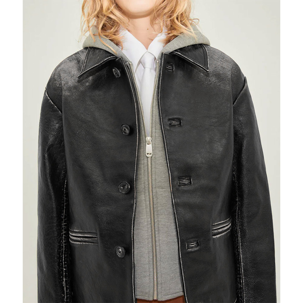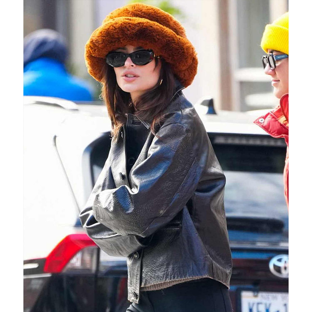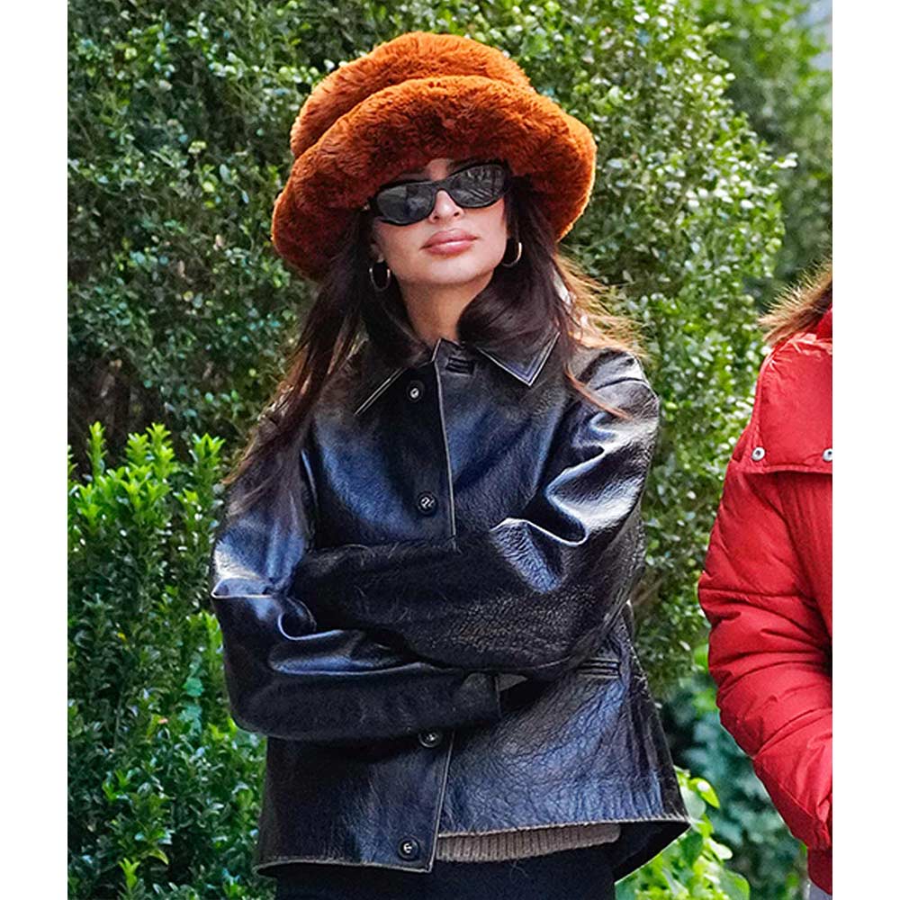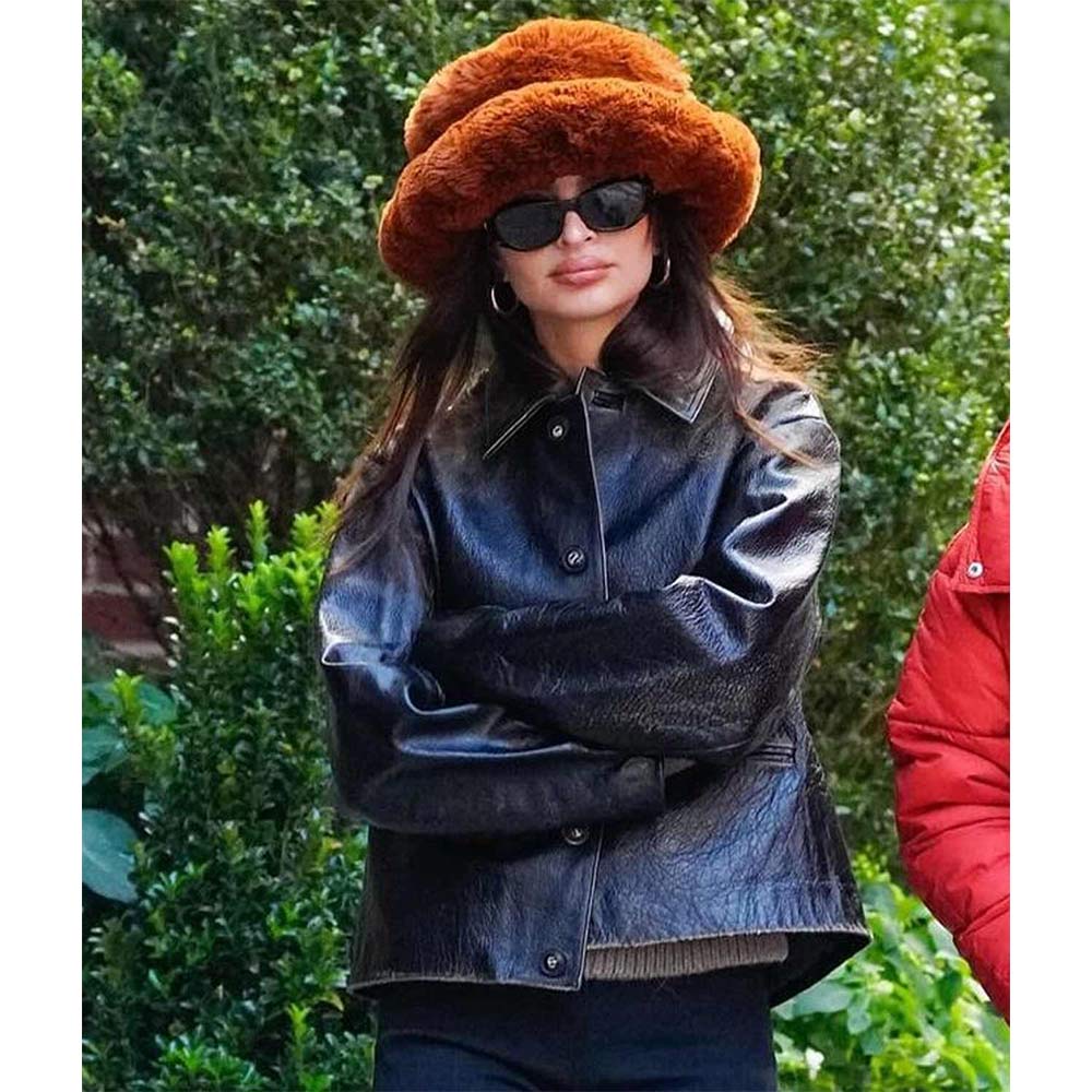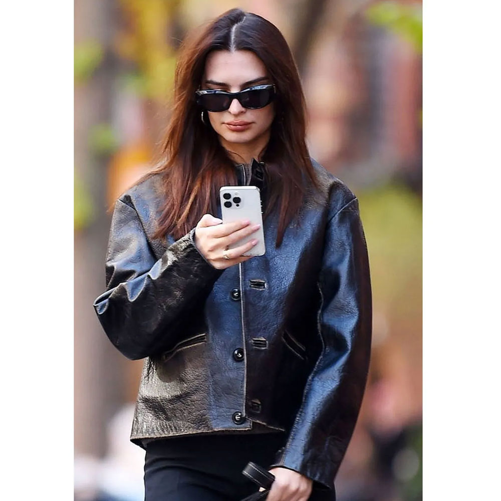 The New York City Emily Ratajkowski leather jacket is a premium attire that can make you stand out in the crowd with its bold black color polishing a vintage charm and grabbing attention with an elevated style. This remarkable piece can set trends with an elegant and simple look achieved by cozier features. Undeniable comfort is offered with the genuine leather fabric of the Emily Ratajkowski New York City leather jacket. It displays long sleeves with open hem cuffs and buttoned closure making it compatible to carry for both casual and formal occasions.