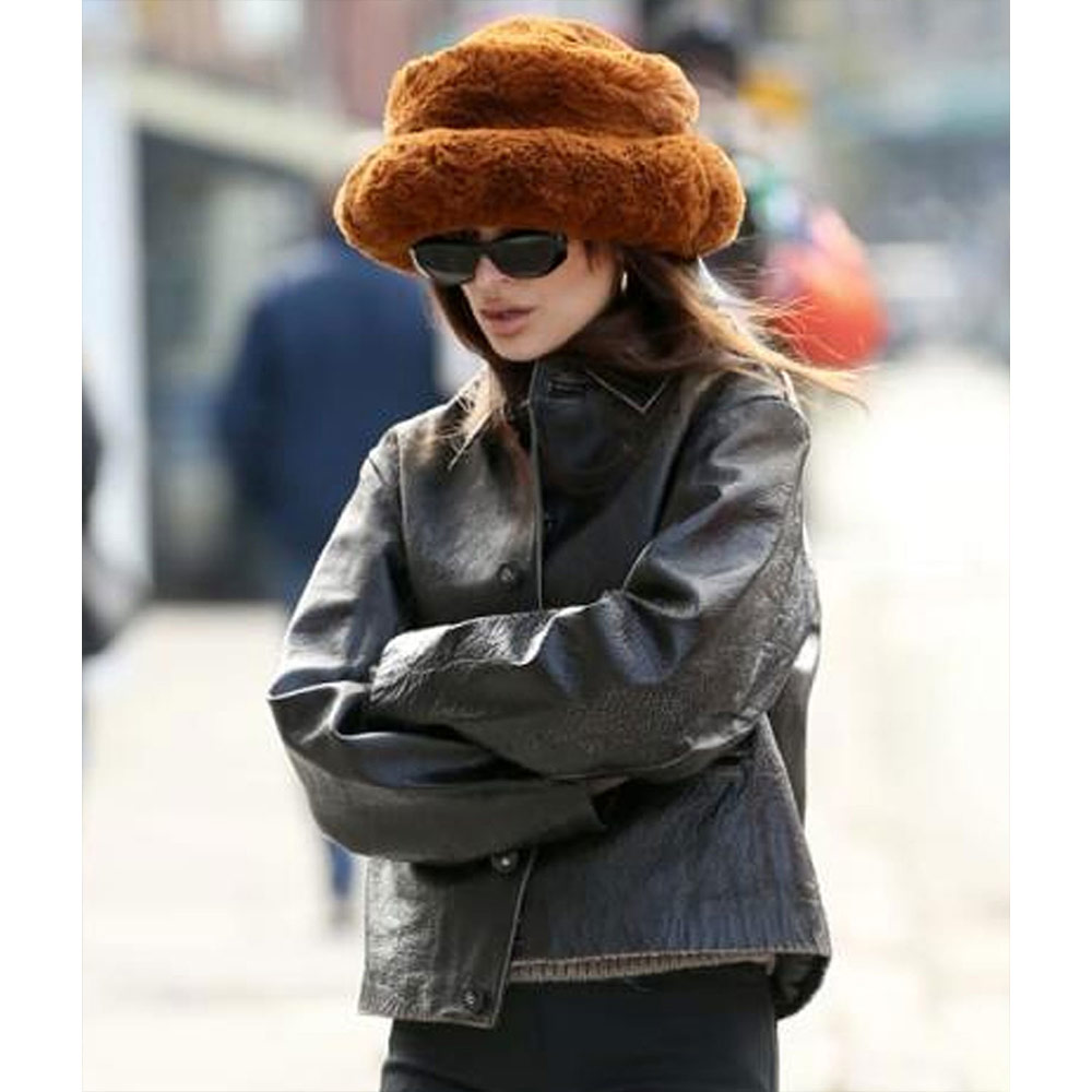 NY City Emily Ratajkowski Worn Effect Brown Leather Jacket