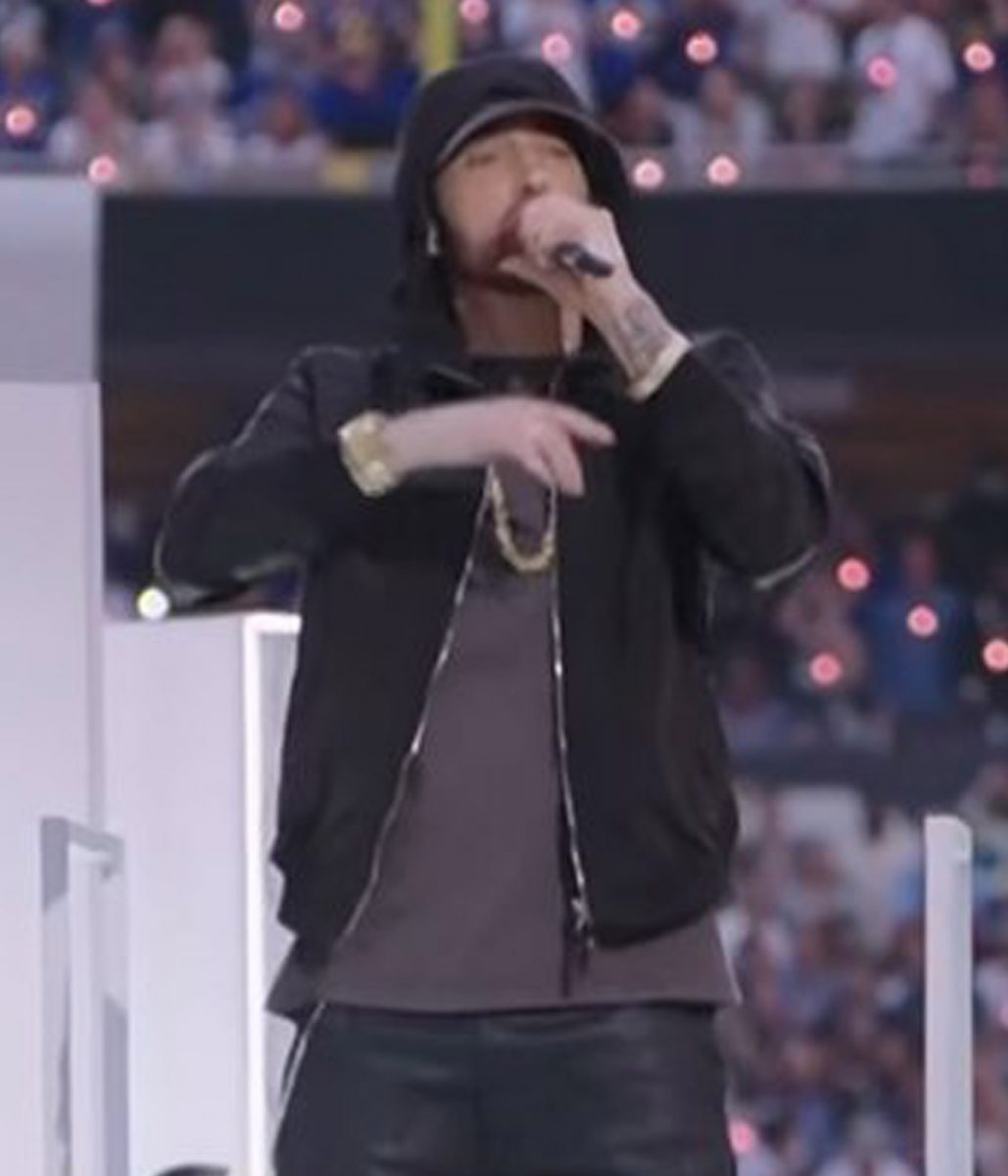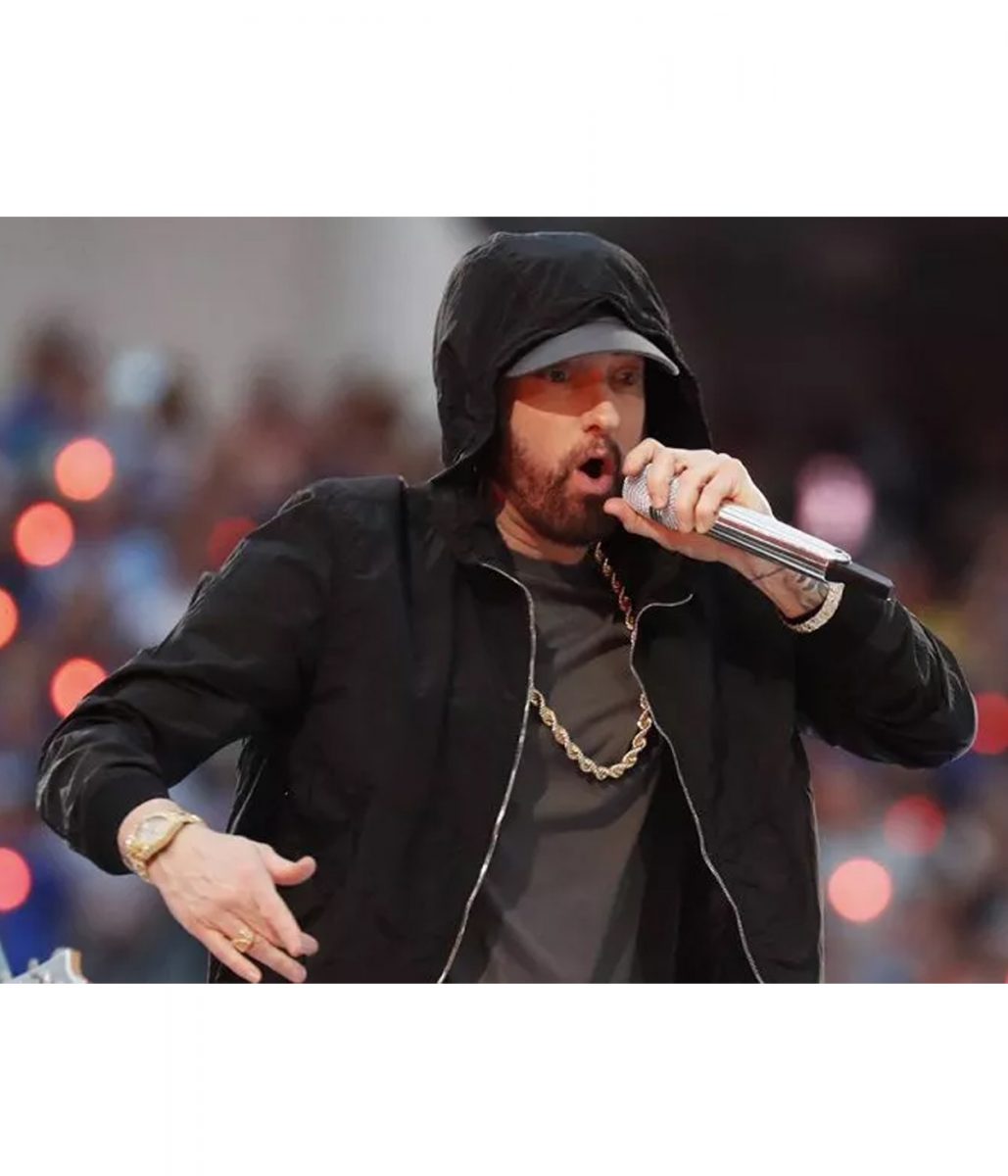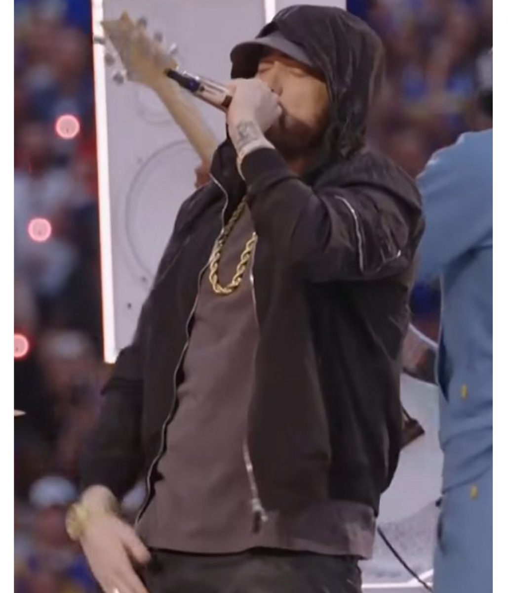 The Super Bowl Eminem hoodie is made from high-quality cotton. The jacket is available in mesmerizing black color, which gives it an innovative and striking look. The collar of the jacket is hooded style. It has a zipper front closure. A soft viscose inner lining of the jacket keeps you warm and relaxed. The sleeves of the Super Bowl Halftime Eminem jacket are long ends with rib-knitted cuffs. The jacket has four outside pockets for keeping stuff. The fine quality stitching of the Super Bowl Eminem hoodie makes it durable and desirable to wear. The jacket is an ideal choice for stylish men.