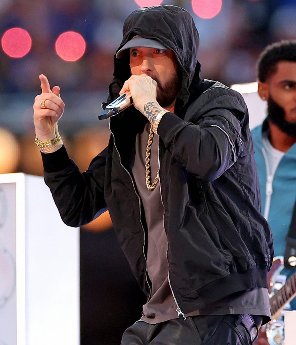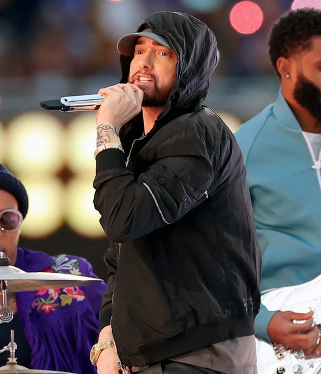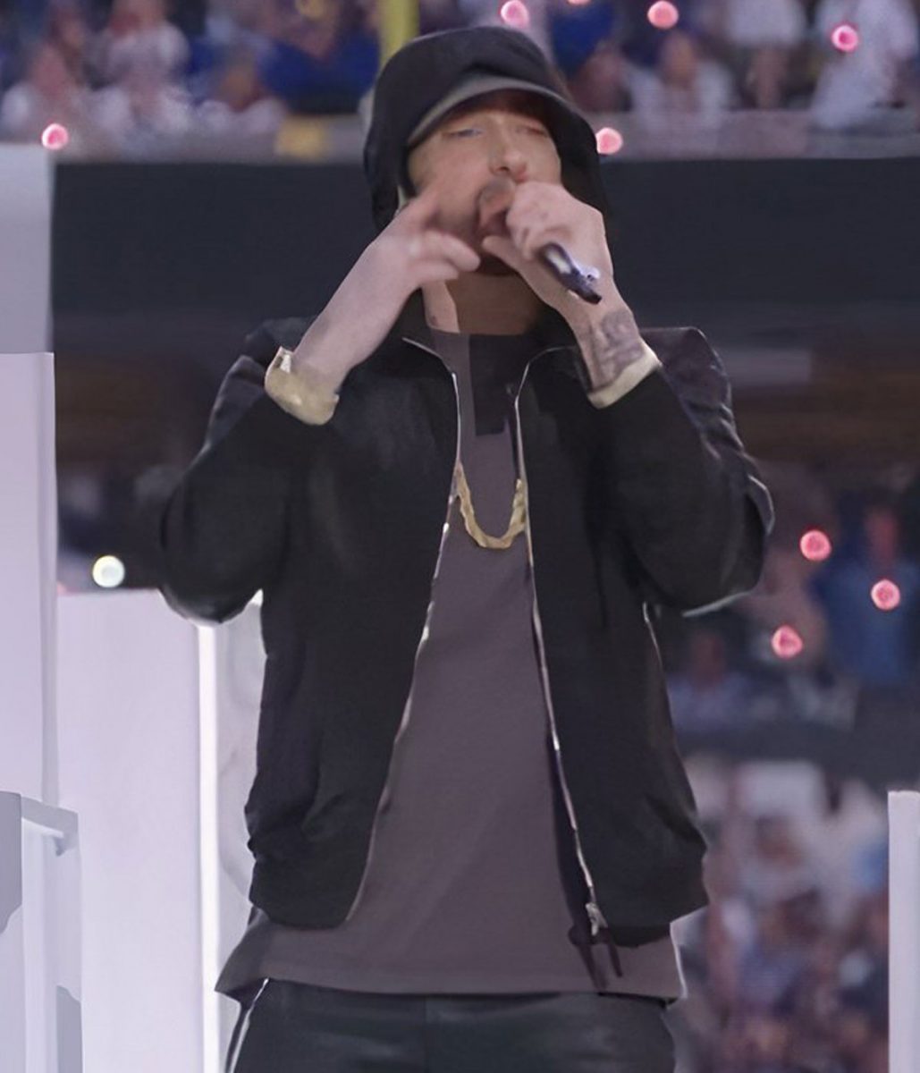 The Super Bowl Eminem hoodie is made from high-quality cotton. The jacket is available in mesmerizing black color, which gives it an innovative and striking look. The collar of the jacket is hooded style. It has a zipper front closure. A soft viscose inner lining of the jacket keeps you warm and relaxed. The sleeves of the Super Bowl Halftime Eminem jacket are long ends with rib-knitted cuffs. The jacket has four outside pockets for keeping stuff. The fine quality stitching of the Super Bowl Eminem hoodie makes it durable and desirable to wear. The jacket is an ideal choice for stylish men.