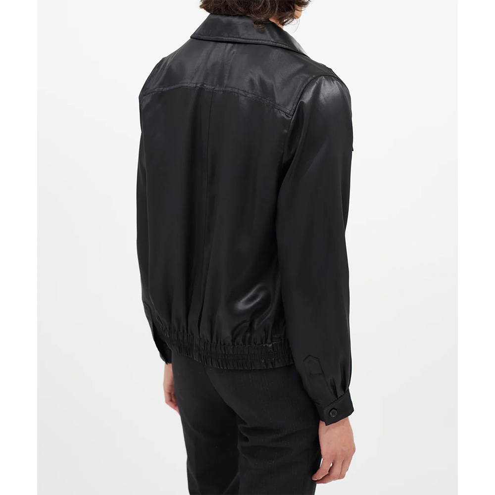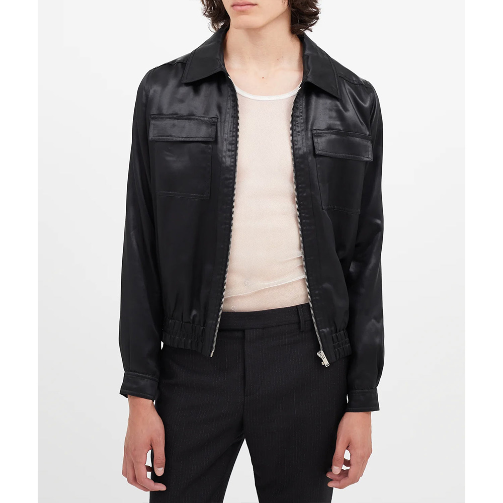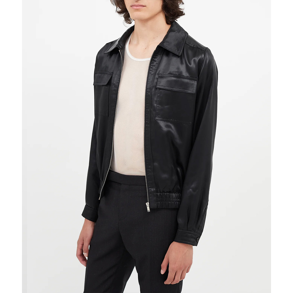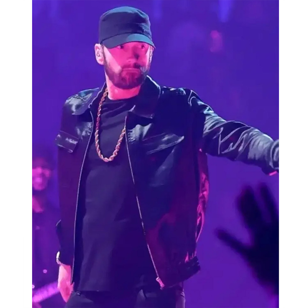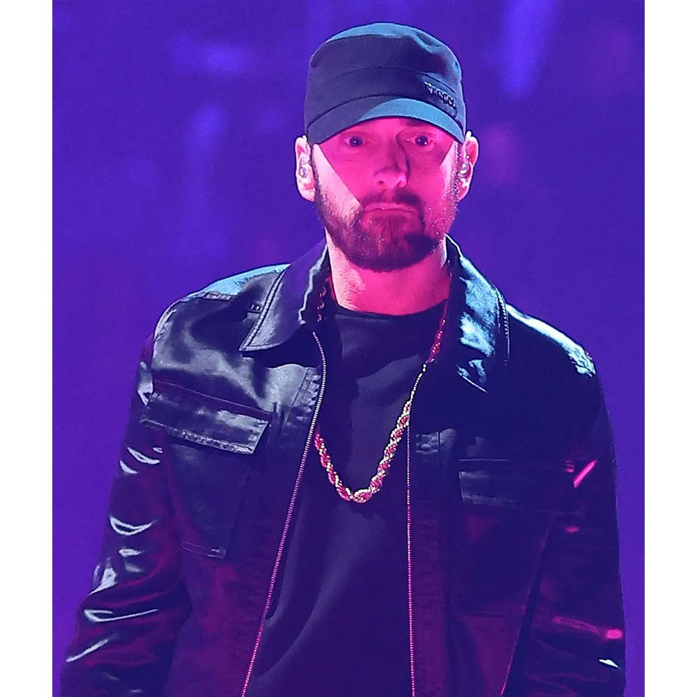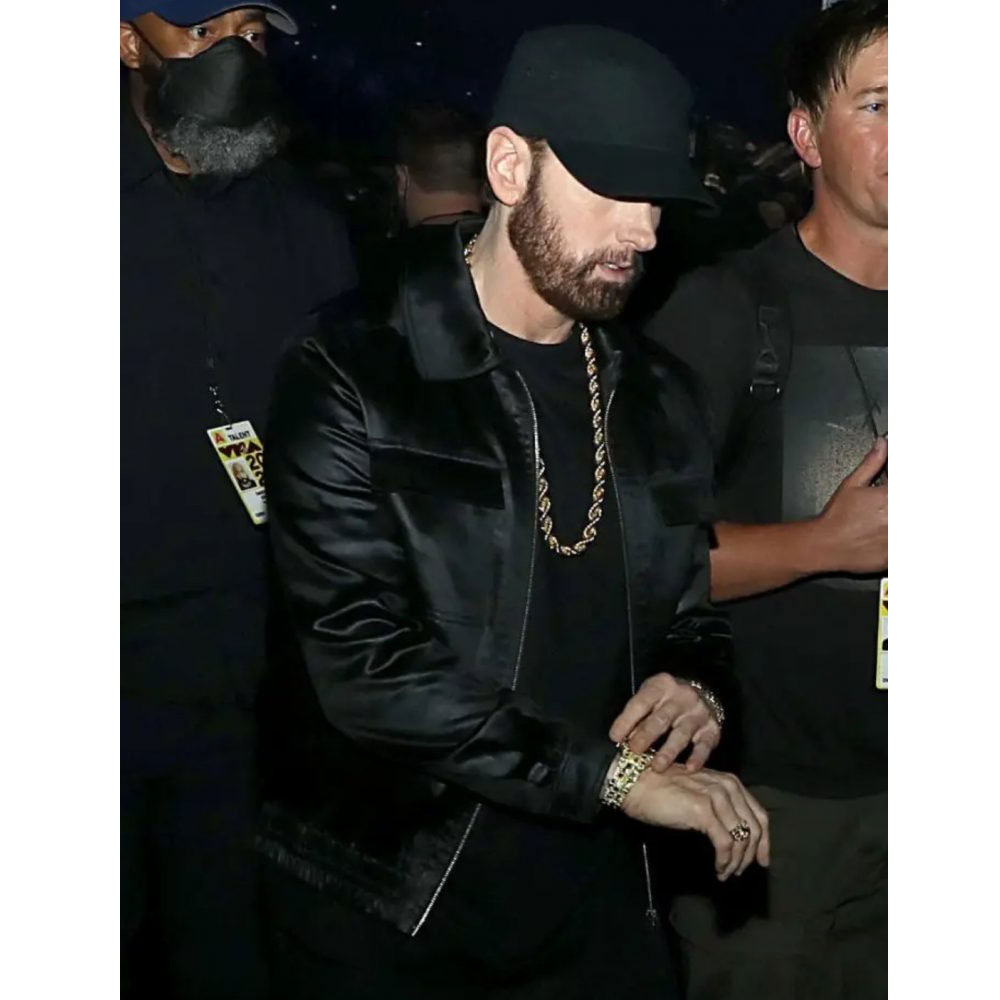 The MTV Awards Eminem Jacket displays your iconic fashion sense appearing as a must-have to inspire others. A shirt-style collar and zipper closure give undeniable comfort without compromising style. Experience the perfect fusion of ergonomic design and modern features with the Eminem MTV Awards Jacket providing ample storage space. Its made from glossy satin fabric enveloped in a bold black color that exudes a sense of playful charm and demand attention.