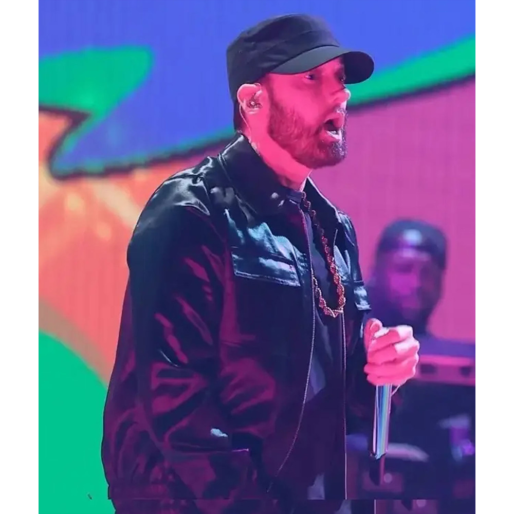 MTV Awards Eminem Black Bomber Satin Jacket