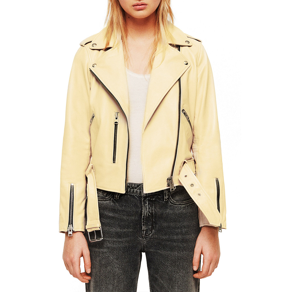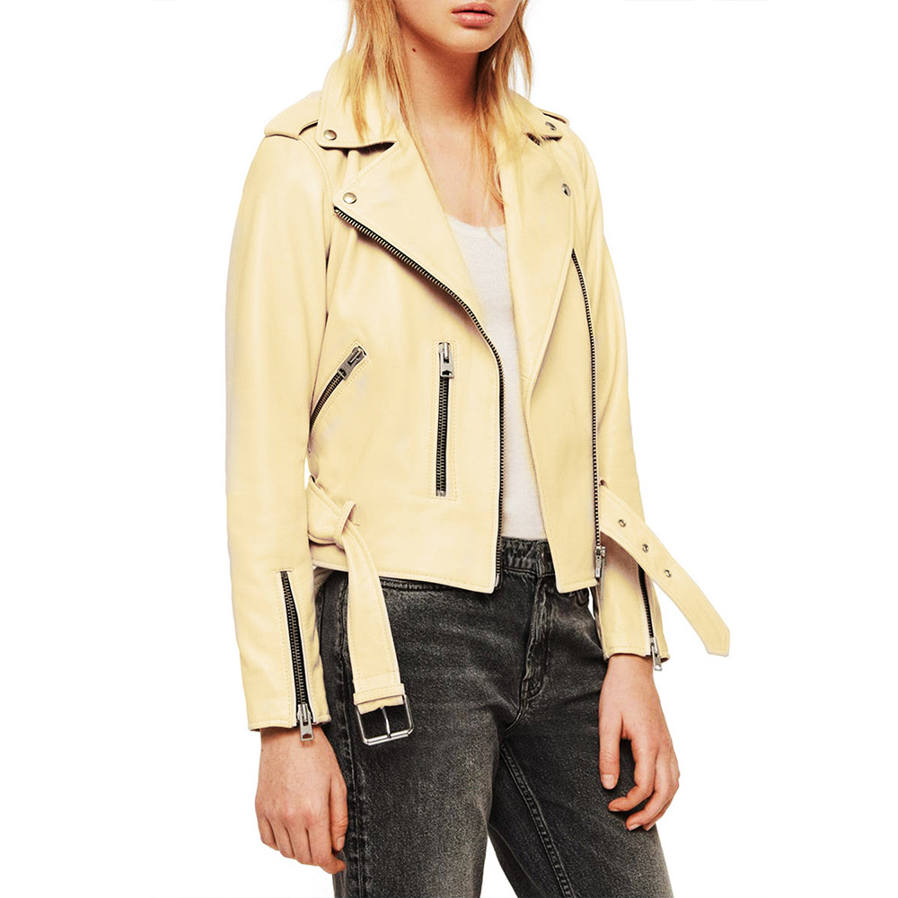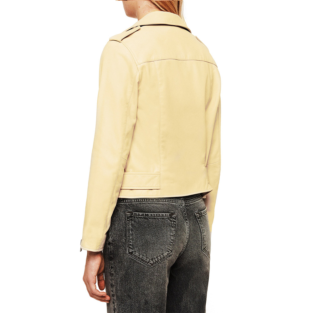 Unleash your style with the Talk Eve Leather jacket, meticulously crafted from premium quality genuine leather. Its glorious cream color creates an innovative anda attractive visual appeal that is simply stunning look. This Eve the Talk Leather jacket features a classic lapel style collar and a branded YKK zipper front closure, marrying elegance with convenience. The soft viscose inner lining guarantees warmth and relaxation, while the long sleeves with zipper cuffs provide a comfortable and refined fit. With two inner and two side pockets, this Talk Eve Leather jacket offers practicality and functionality. The fine quality stitching ensures both comfort and desirability, making it an ideal choice for parties and events.
