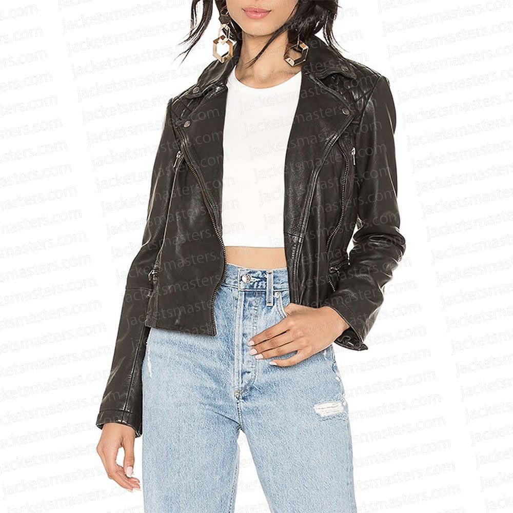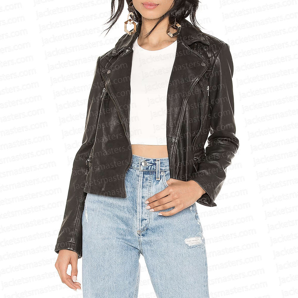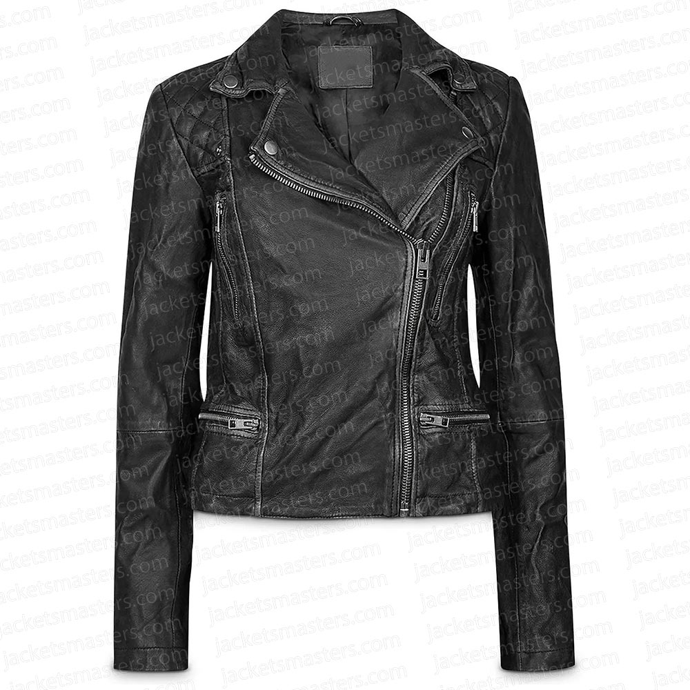 This everything i know about love maggie leather jacket is designed using genuine leather. It entails viscose lining at its internal side for unlimited solace. It even possesses a chic notched lapel collar, diamond quilted shoulders, buttoned-strap zipper cuffs, long-fitted sleeves and an asymmetrically positioned zipper frontal while four outside zipper pockets with two inner side pockets are also added for functionality purpose. So, don’t miss out on this splendid everything i know about love emma appleton leather jacket now available in striking black color.