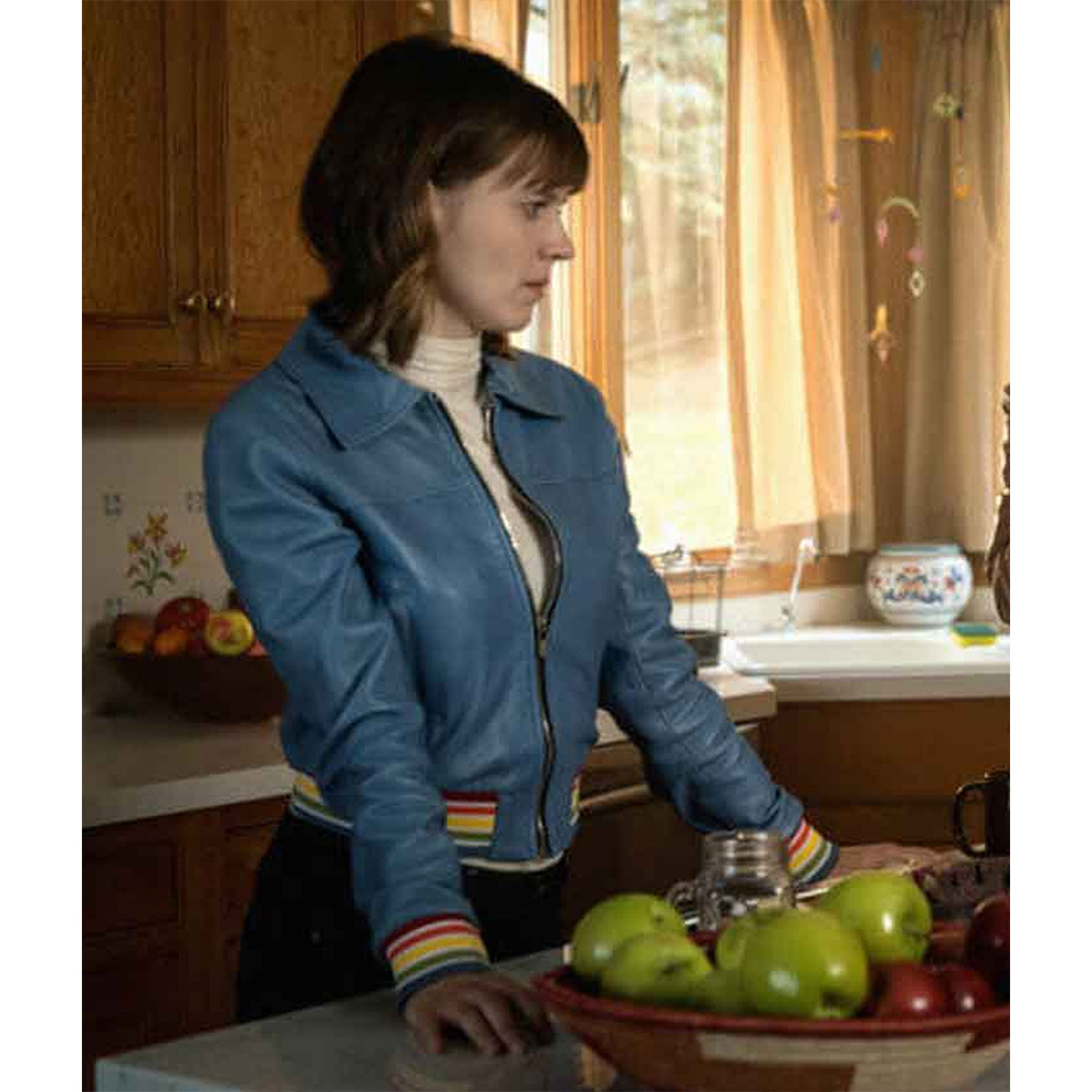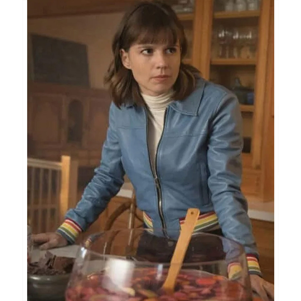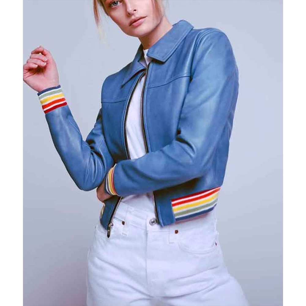 Evil Season 2 Kristen Bouchard Blue Rainbow Trim Rib Leather Jacket