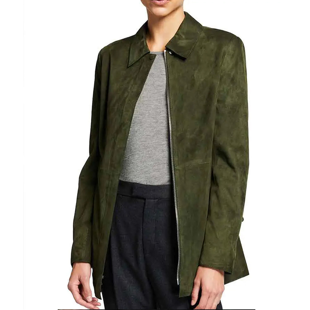 Embrace the allure of the Kristen Bouchard Suede jacket, meticulously crafted with high-quality suede leather. Its majestic green color brings forth an innovative and striking aesthetic. Sporting a shirt style collar and belted front closure, this Evil Season 2 Katja Herbers Green Suede jacket seamlessly blends style and functionality. The viscose inner lining ensures warmth and relaxation. With long sleeves adorned with open hem cuffs, a comfortable and sophisticated fit is guaranteed. The Kristen Bouchard Suede jacket boasts two inner and two side pockets, providing ample storage options. Experience comfort and desirability with its fine quality stitching, making it the perfect choice for parties