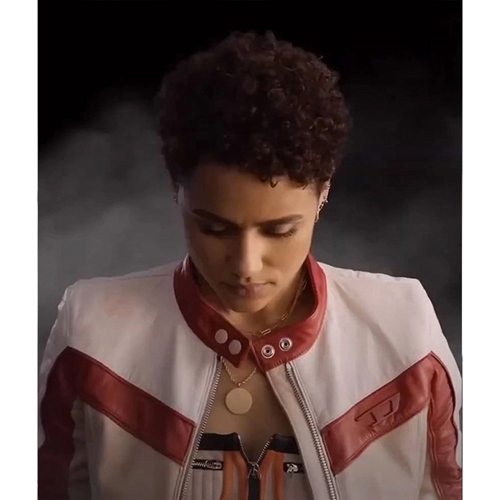Indulge in the allure of the Ramsey Leather jacket, meticulously crafted with premium quality genuine leather. Its glorious white color introduces an innovative and stunning appearance that demands attention. The Fast X Nathalie Emmanuel Leather jacket boasts a snap tab style collar and a branded YKK zipper front closure, combining style and functionality seamlessly. Stay warm and relaxed with its soft viscose inner lining, while the long sleeves with open hem cuffs provide a comfortable and sophisticated fit. The jacket’s two inner and two side pockets offer convenience and practicality. With its fine quality stitching, this Ramsey Leather jacket promises comfort and desirability, making it the perfect choice for any party.