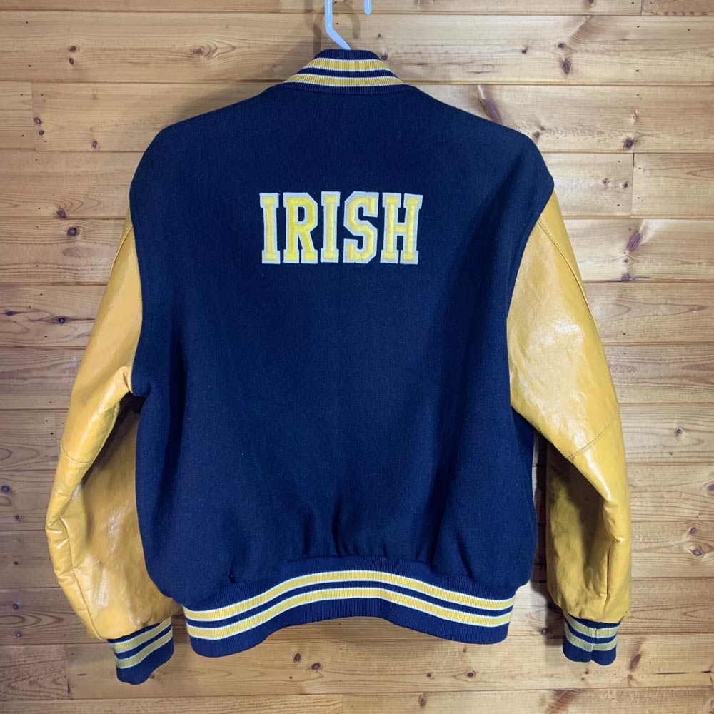 There is no loss of functionality because it features two slanted waist pockets, with two inner pockets for added convenience. The chest has an emblem with the Notre Dame Fighting Irish and the words “Irish” written on the back part will enhance your team spirit. This Notre Dame Fighting Irish College Jacket is a perfect combination of comfort and functionality with the team’s logo.
