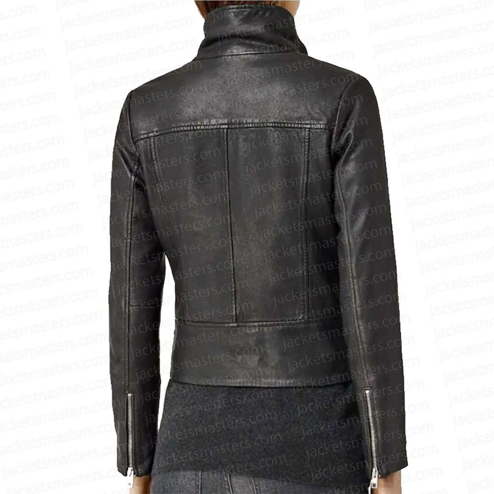 Crafted from the finest quality wool blend the Sharon Leone Leather jacket exudes sophistication. Its mesmerizing black color adds an innovative and striking touch. The shirt style collar enhances its timeless appeal. With branded YKK zipper front closure, this Fire Country Diane Farr Leather jacket is effortlessly stylish. Stay warm and relaxed with the soft viscose inner lining. The long sleeves with open hem cuffs exude elegance. Stay organized with one inside and two outside pockets. Fine quality stitching of Sharon Leone Leather jacket ensures durability and comfort. Embrace a sleek and alluring style that sets you apart from the crowd. Step out in this catchy and unique coat that commands attention.