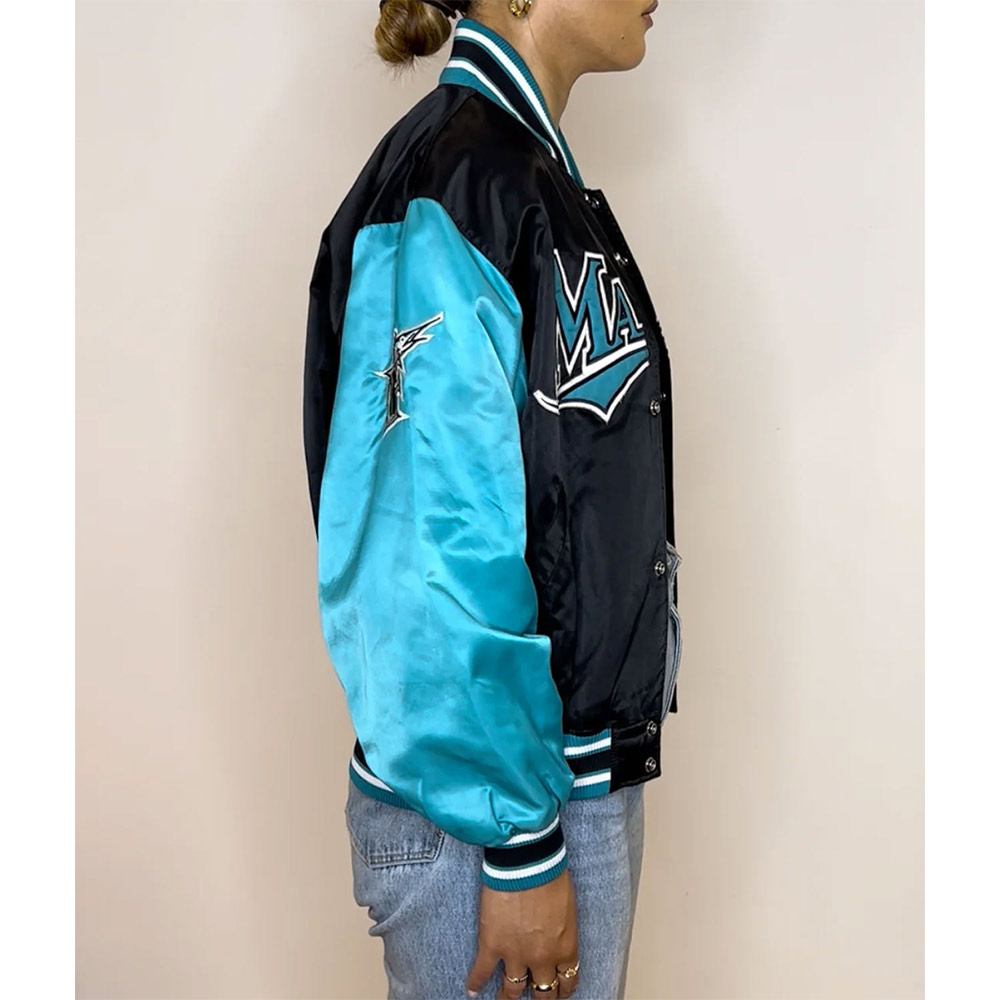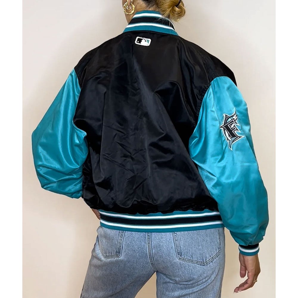 Florida Marlins Blue/Black Varsity Full-Snap Satin Jacket