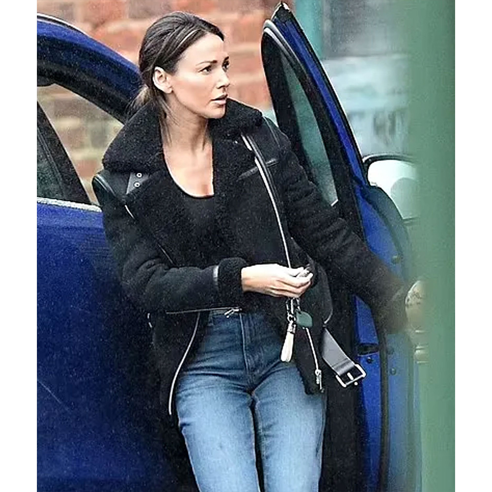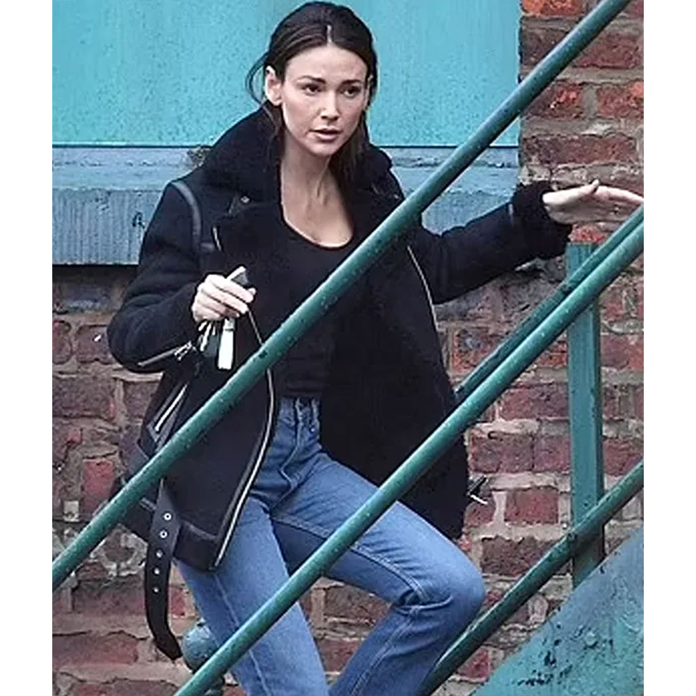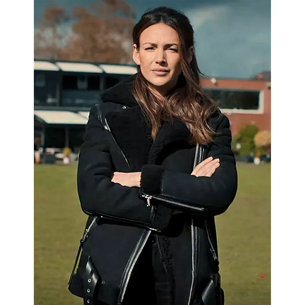 Fool Me Once Season 1 Maya Stern Suede Black Shearling Jacket