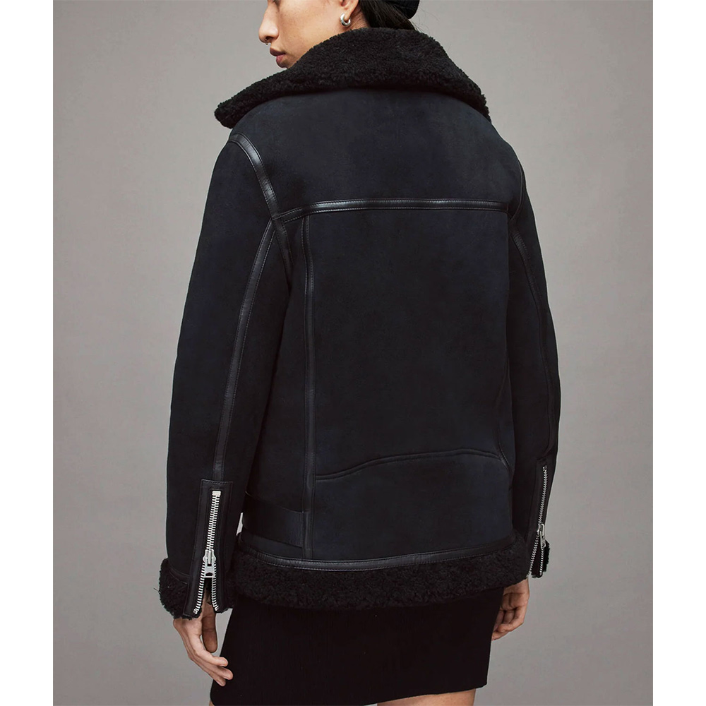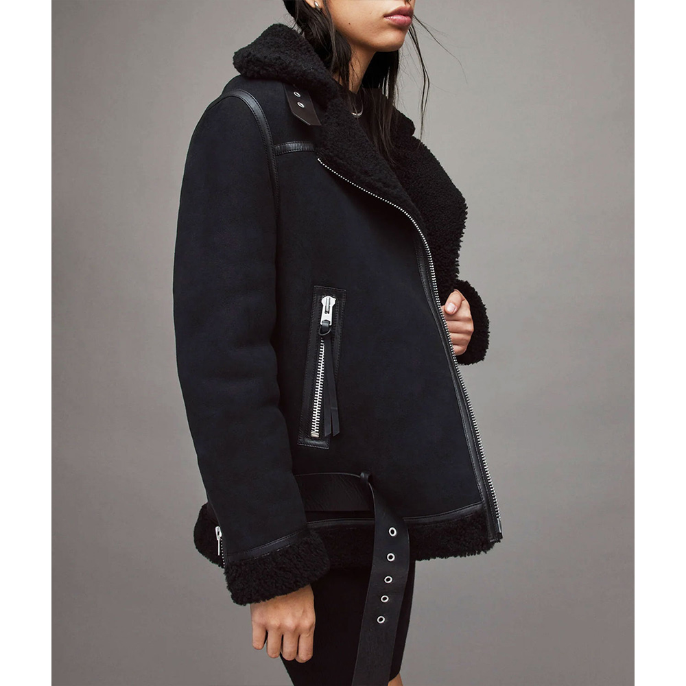 Practicality is the key feature of the jacket, which has two zippered pockets at the waist, and one internal one to store all your belongings. The stitching is done to perfection thus enhancing the jacket’s durability while at the same time giving it a classy look. The Maya Stern shearling jacket is for those who are in search of fashion and utility in the clothes that they wear especially jackets.
