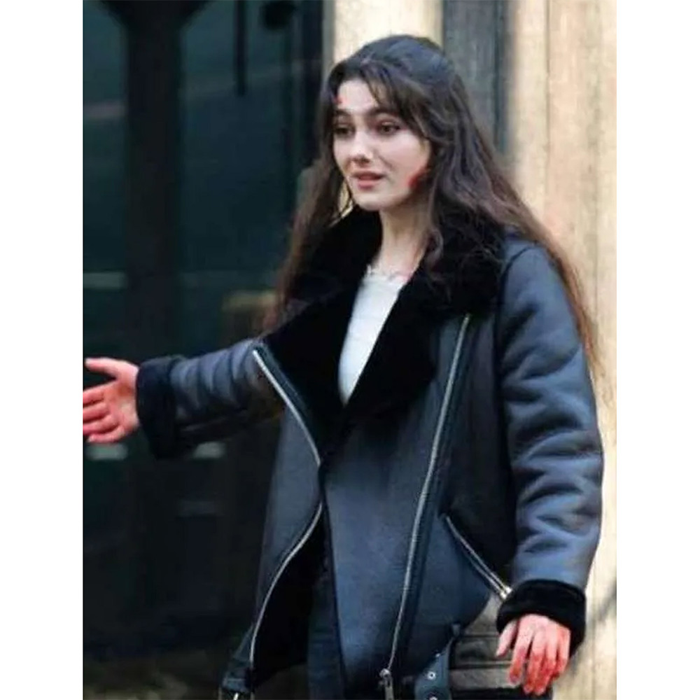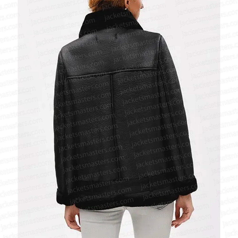 Emily Carey Geek Girl Harriet Manners Black Leather Shearling Jacket