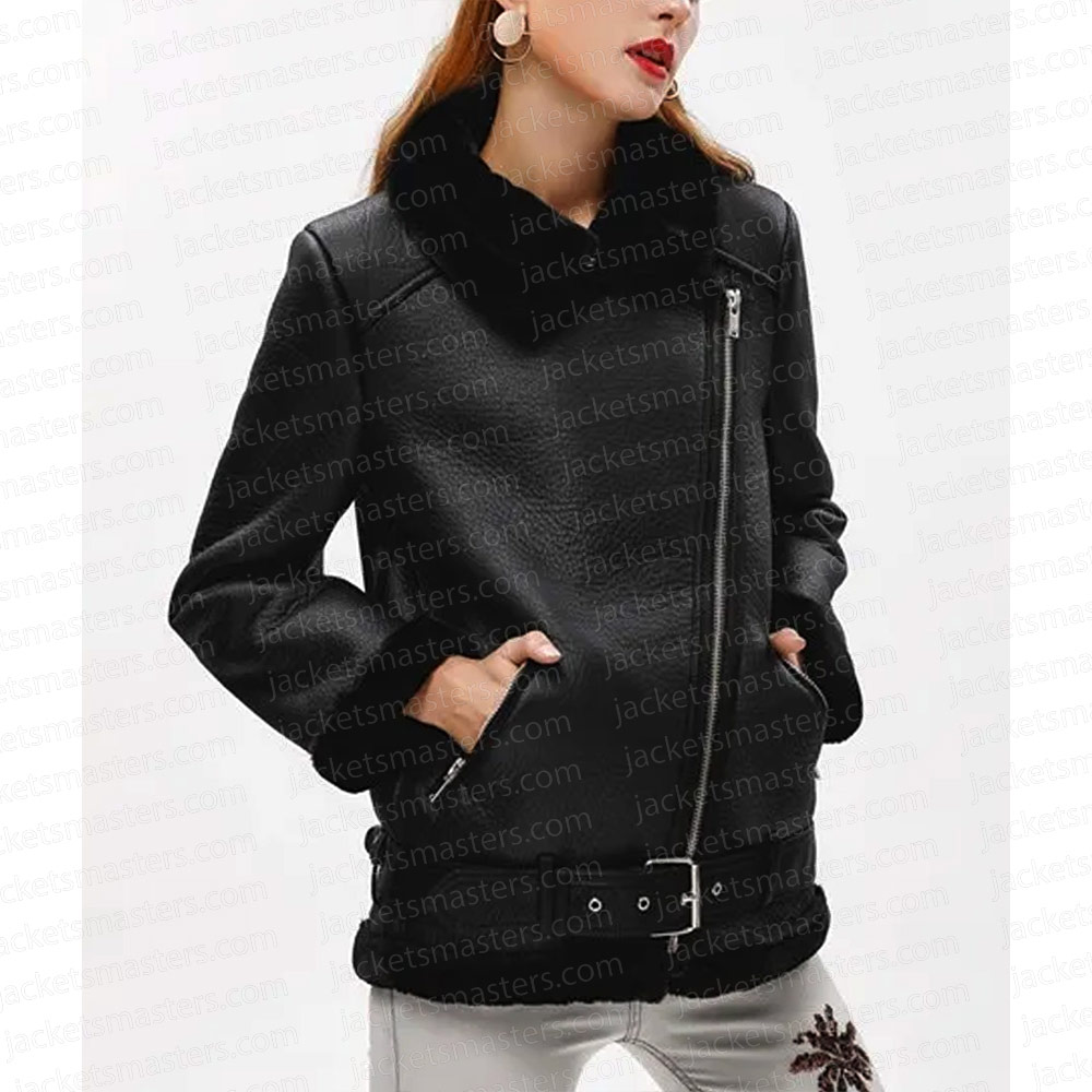 The Geek Girl Emily Carey Shearling Leather Jacket is one of the popular geek girl jackets with front zipper closure, full fitted sleeves with open hem cuffs which have faux fur trims. It has two zipper pockets at the front that will give you an extra space for things you need to carry along and one internal pocket for easy access.