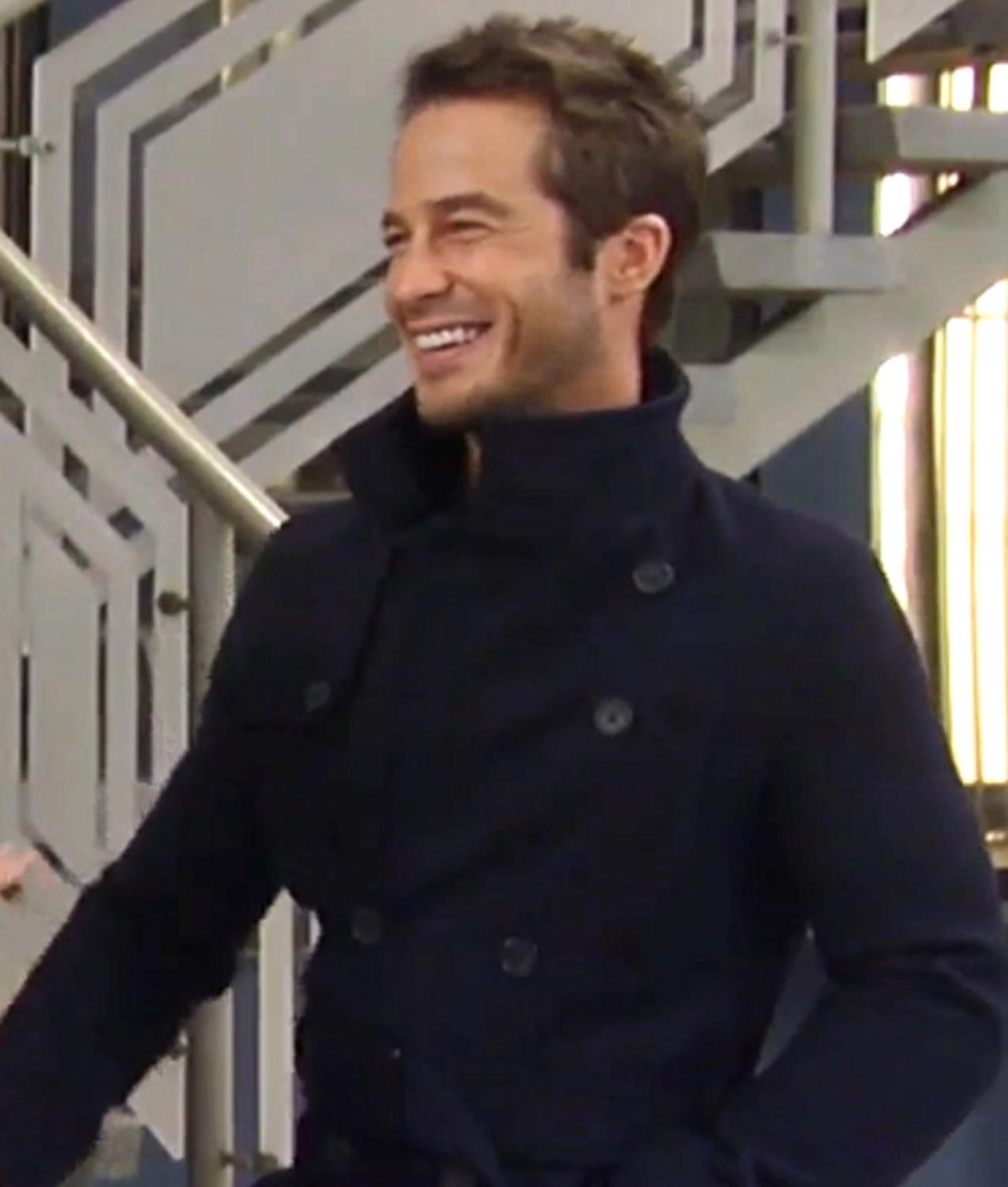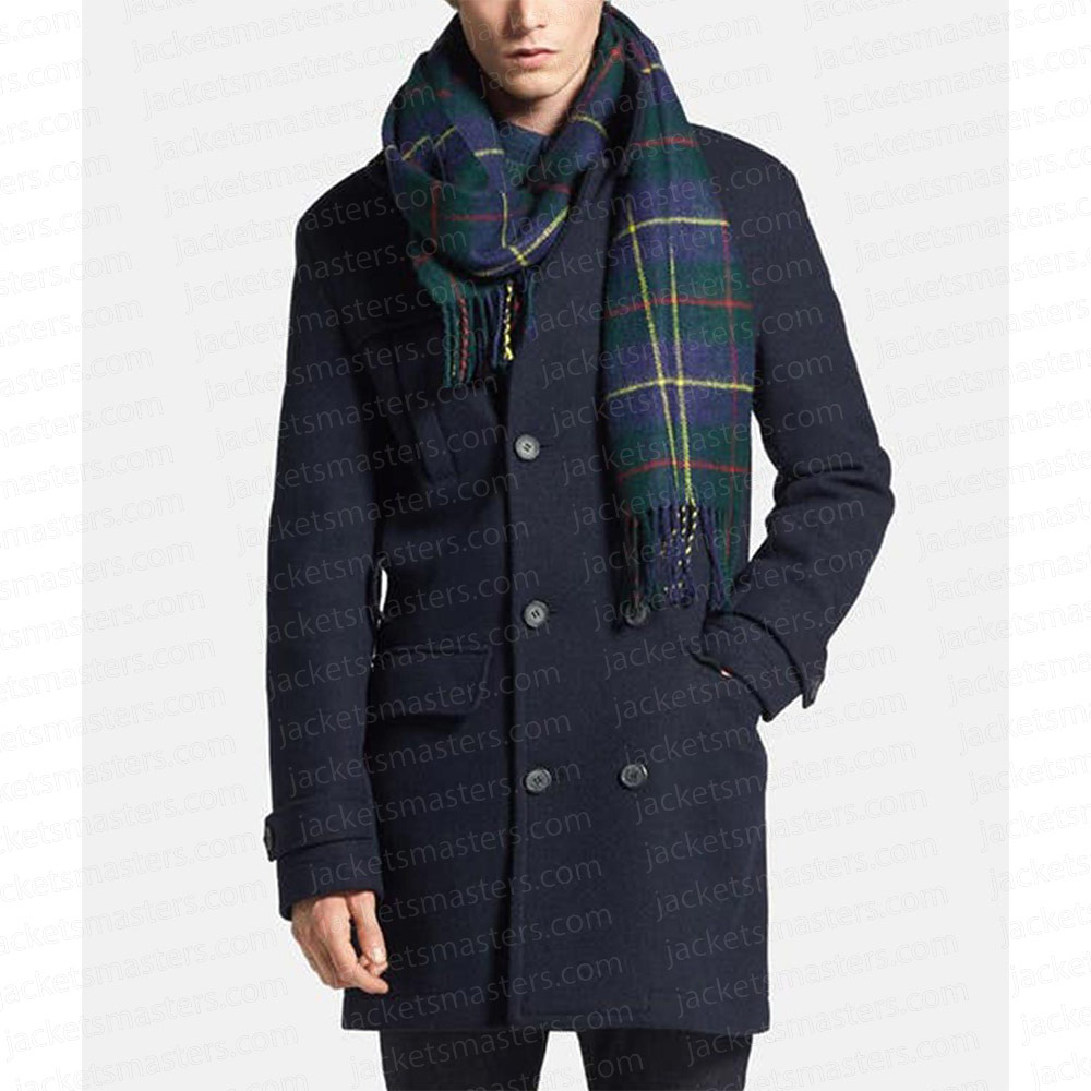 Ben Hogestyn General Hospital Lucas Jones Navy Wool Trench Coat