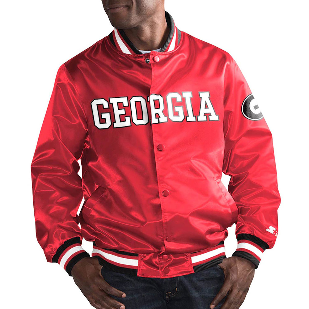 The Georgia Bulldogs O-Line Jacket is a bold piece of outerwear designed for loyal fans of the team. Inspired by the heritage of Georgia football, this Starter jacket blends comfort, quality, and team pride. As a result, it is a perfect addition to any Bulldogs supporter’s wardrobe.