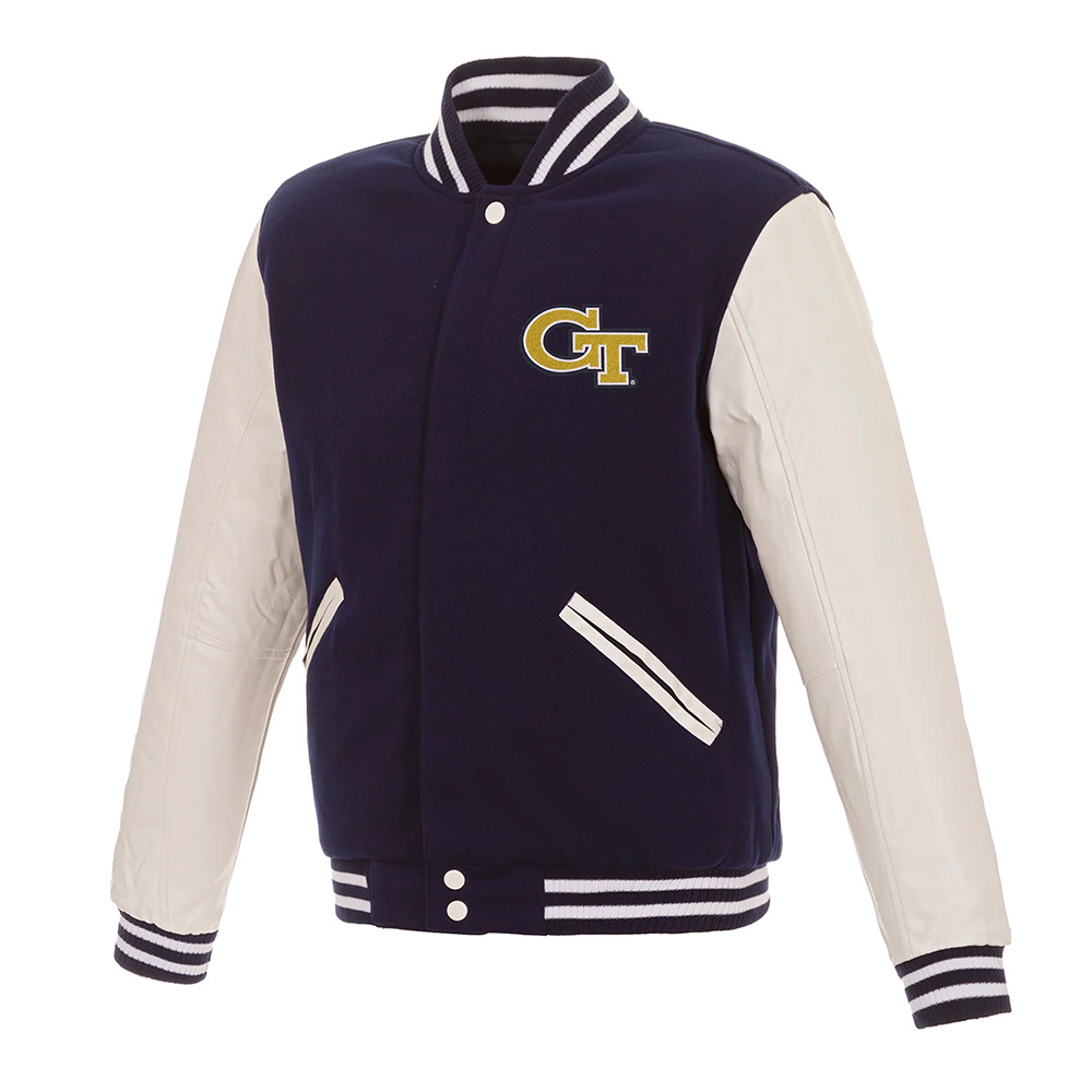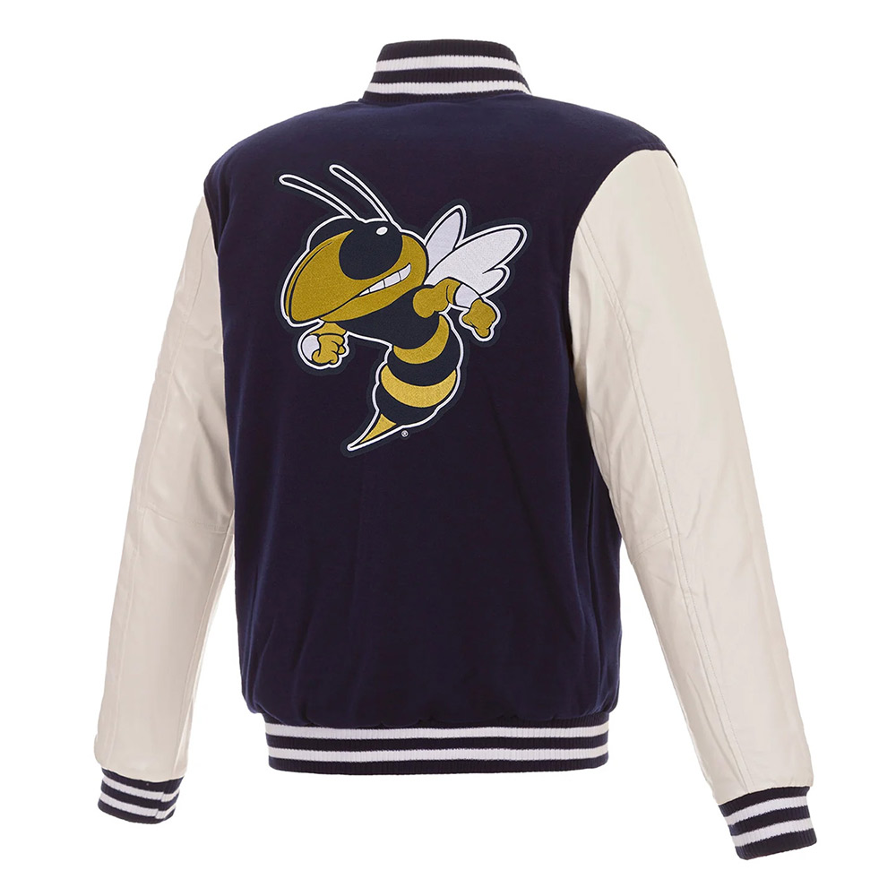 Navy Blue/White Georgia Tech Wool/Leather Varsity Jacket