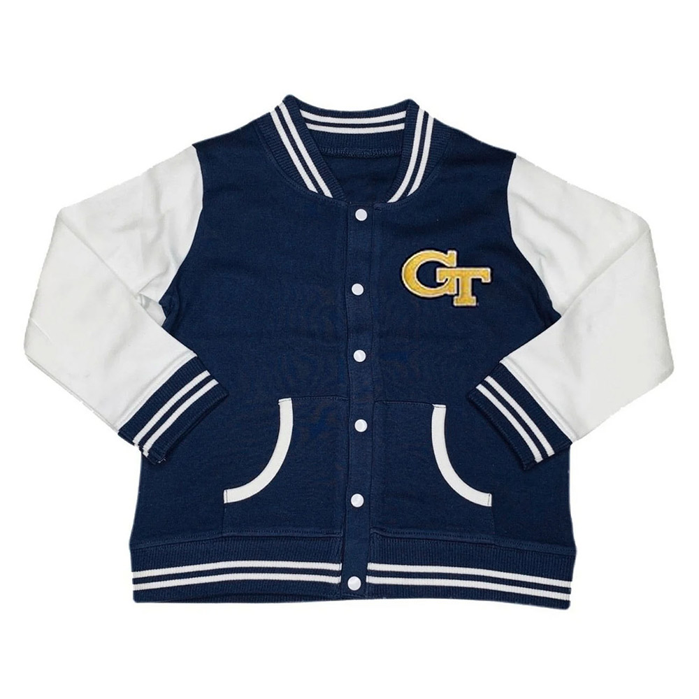 Georgia Tech Navy Blue/White Full-Snap Wool/Leather Varsity Jacket