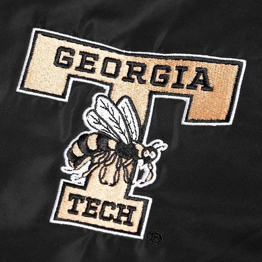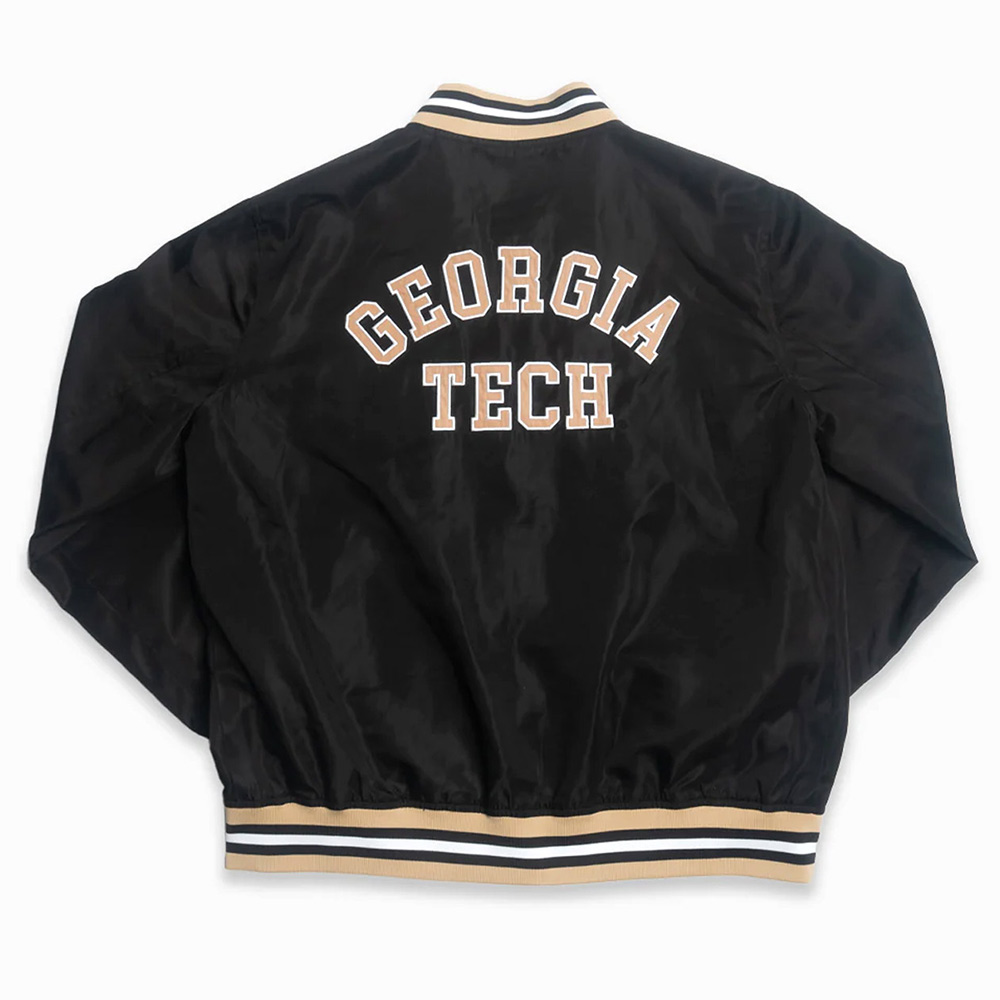 Georgia Tech Script Full-Snap Black Satin Bomber Jacket