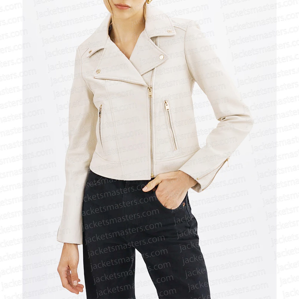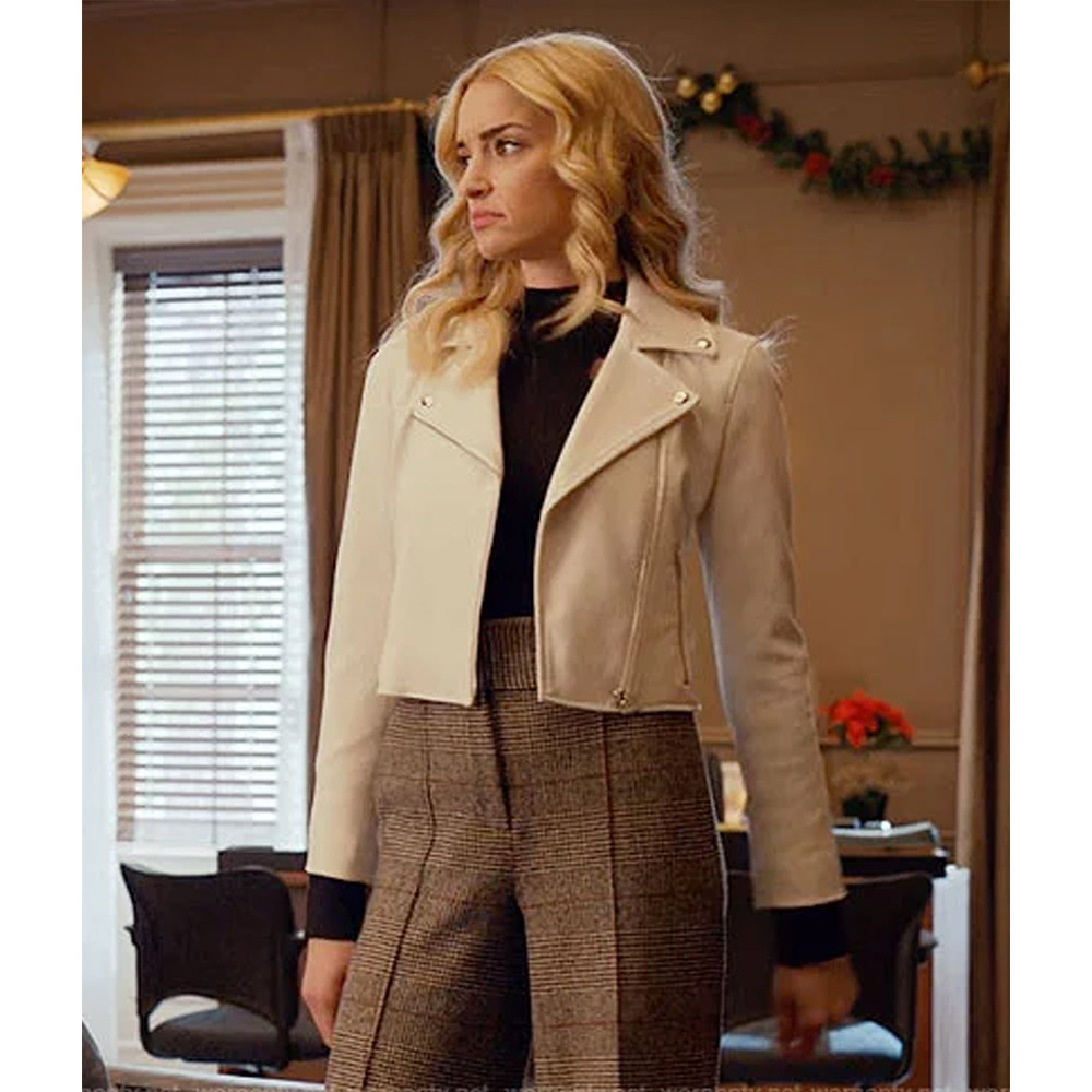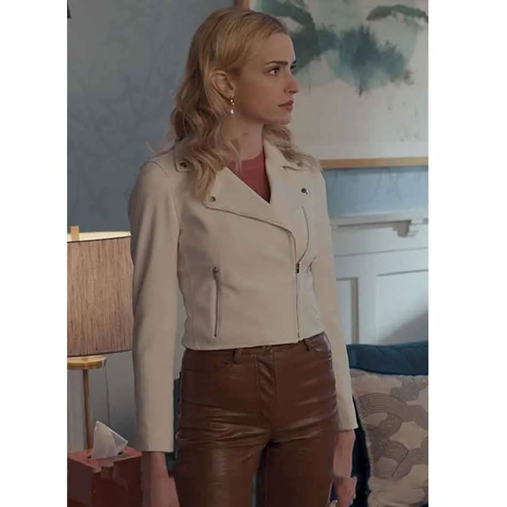 Brianne Howey Ginny & Georgia Miller White Biker Leather Jacket