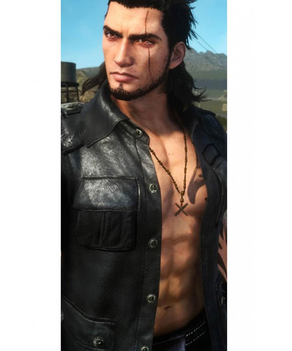 Final Fantasy XV Game Gladiolus Amicitia Black Leather Jacket