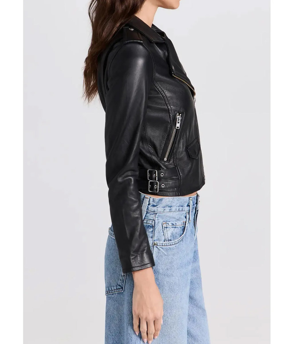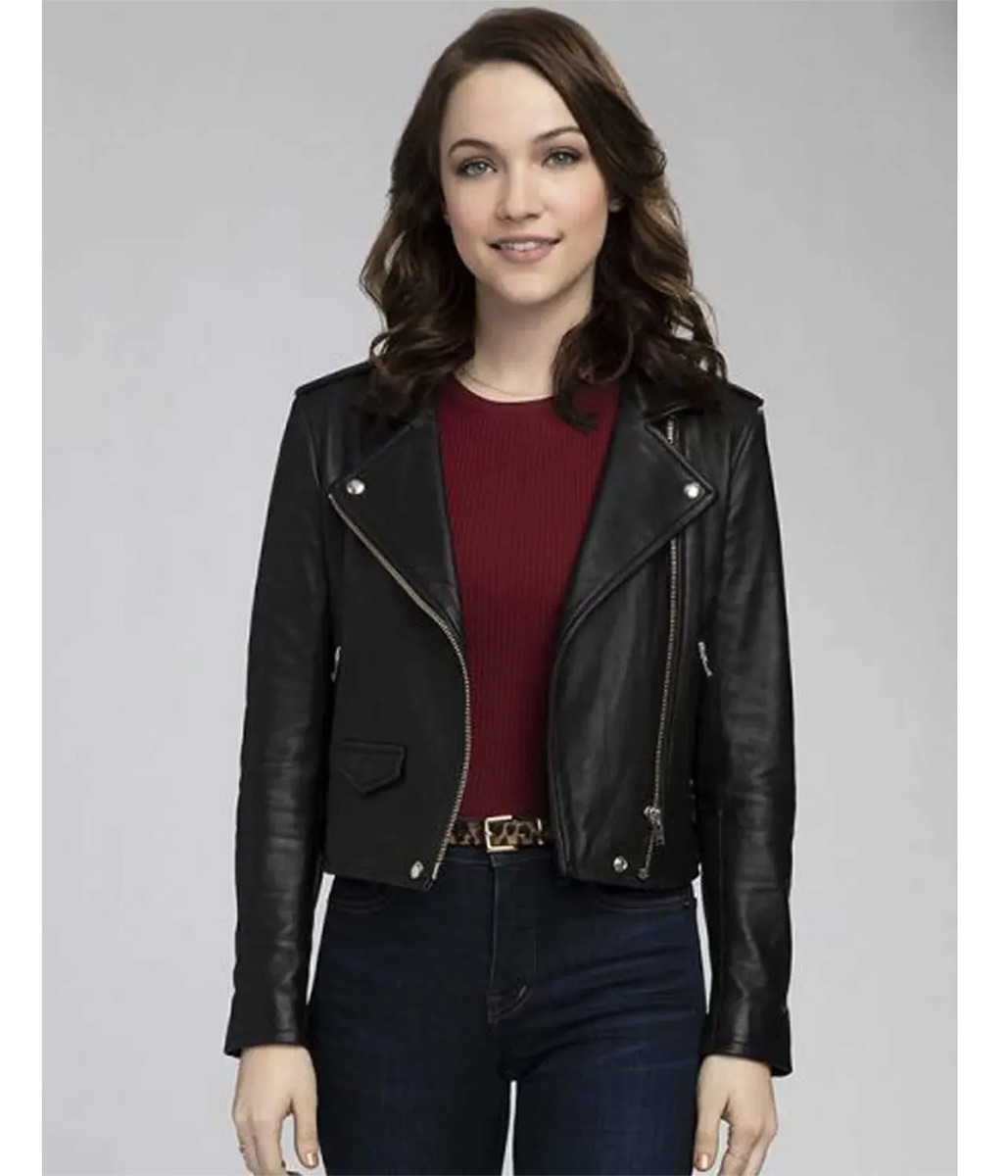 God Friended Me Cara Bloom Cropped Black Leather Biker Jacket