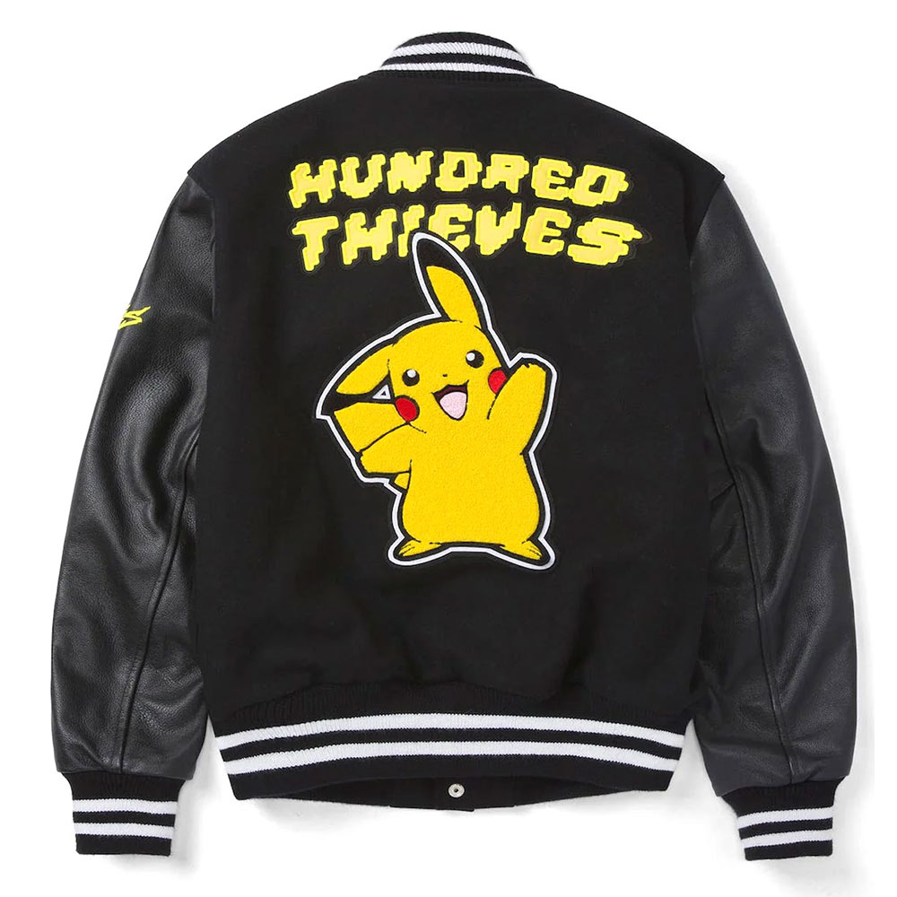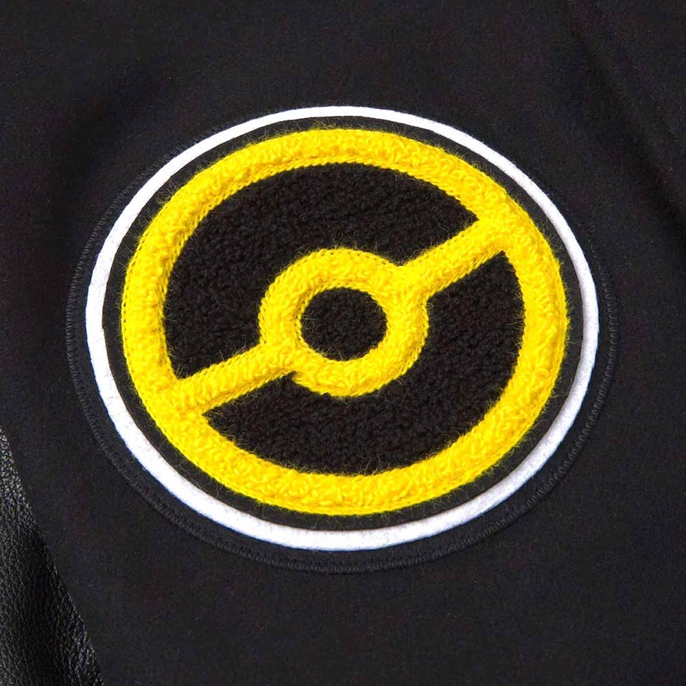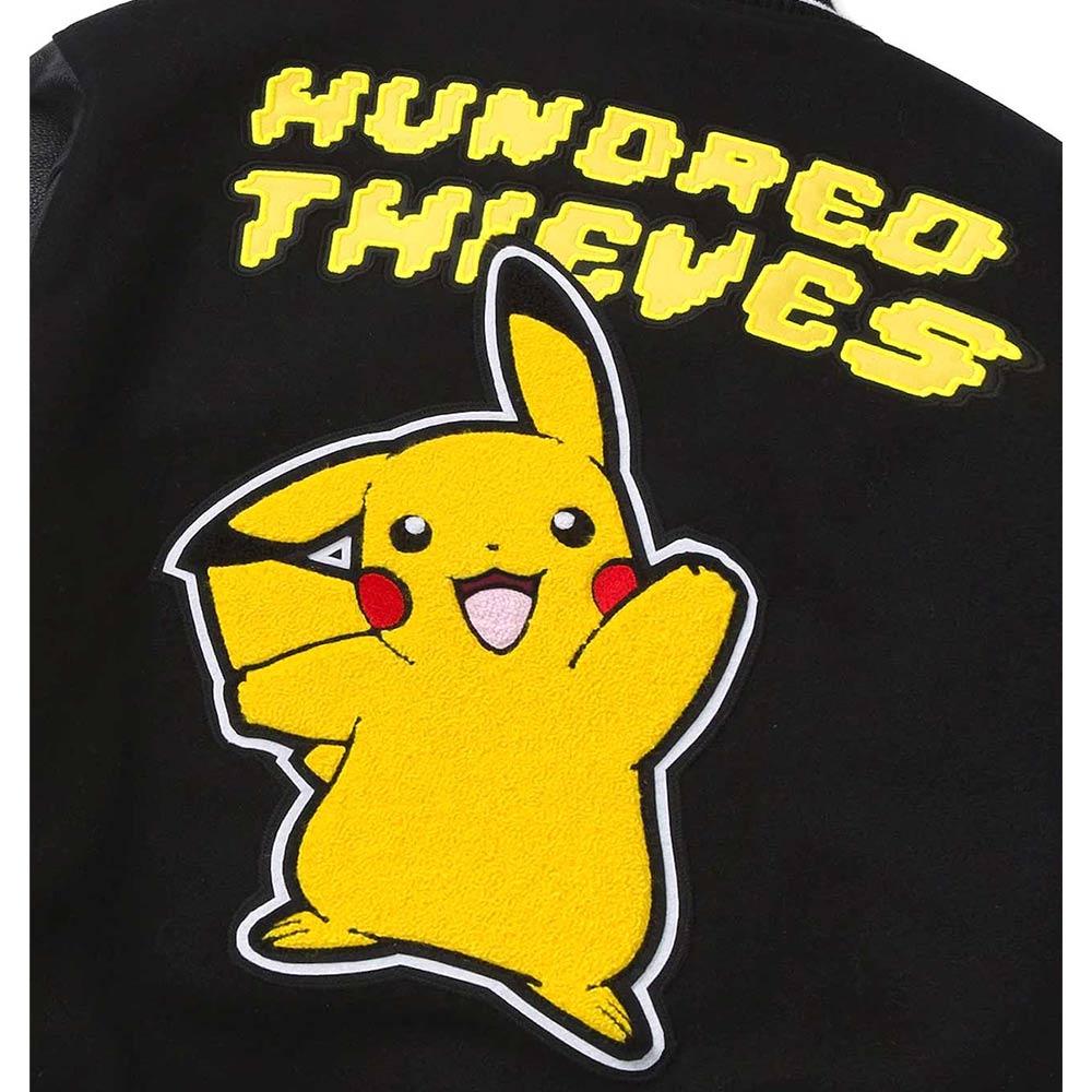 Pikachu Golden Bear Varsity Full-Snap Black Wool/Leather Jacket