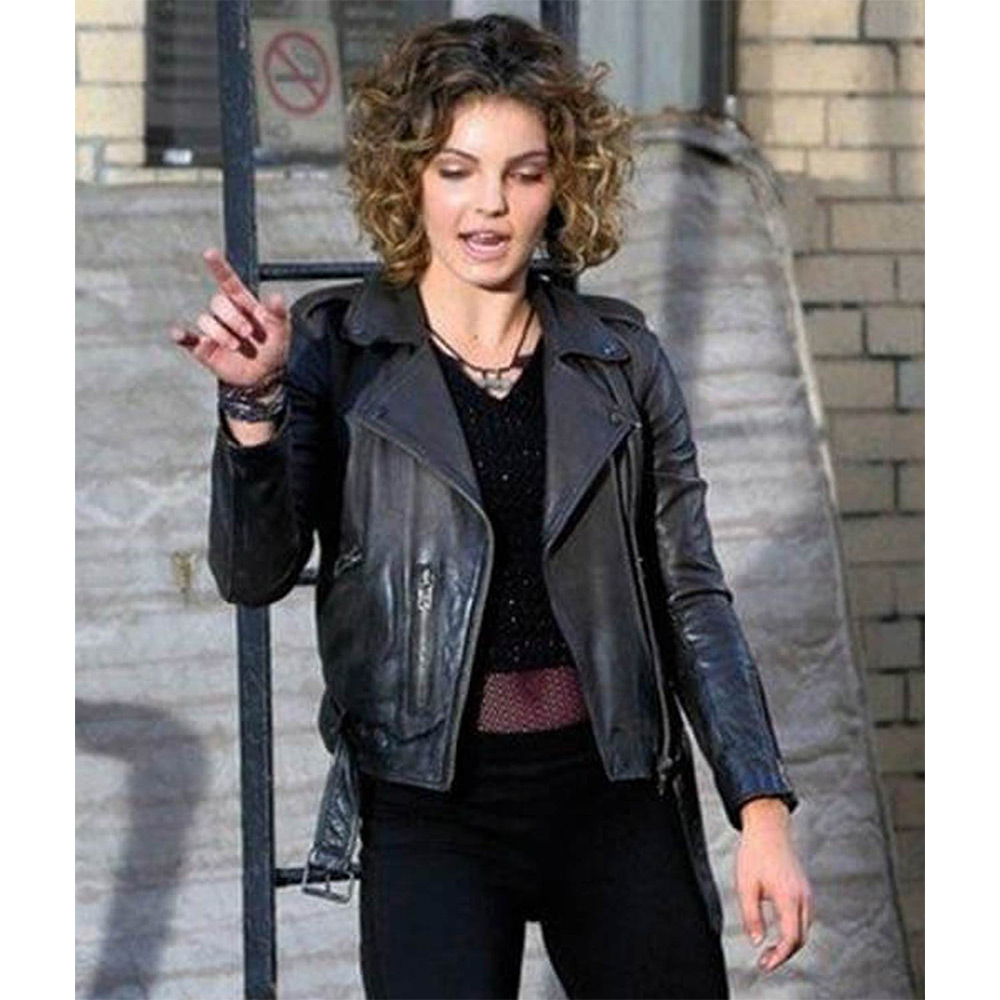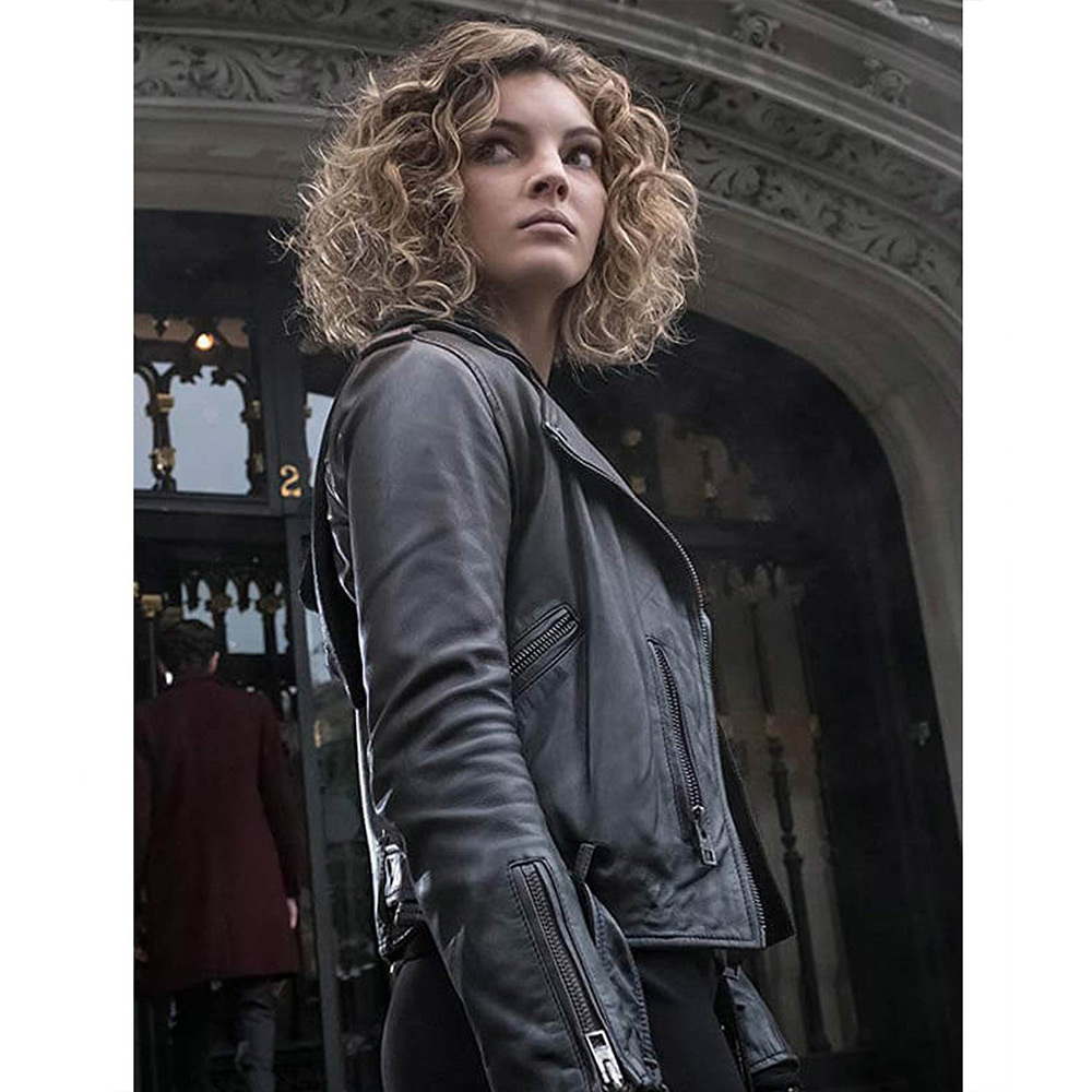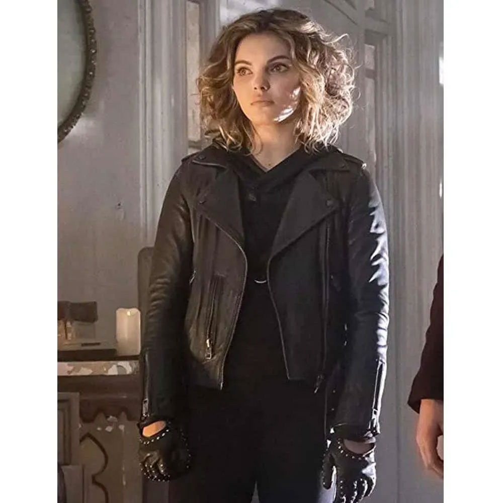 Camren Bicondova Gotham Season 2 Selina Kyle Black Leather Biker Jacket
