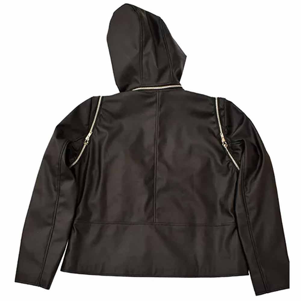 The Selina Kyle leather jacket is made from high-quality genuine or Faux leather. The jacket is available in a mesmerizing black color which gives it an innovative and mysterious look. The jacket has an attached hood which makes it unique. It has a branded YKK front zipper closure. A soft viscose inner lining of the jacket keeps you warm and relaxed. The sleeves of the Gotham season 5 Selina Kyle jacket with hood are full-length and fitted with zipper cuffs. The jacket is the exact clone of the worn by the character in the show. The fine quality stitching of the Selina Kyle leather jacket makes it durable and comfortable to wear. The jacket is ideal for a night out with friends.