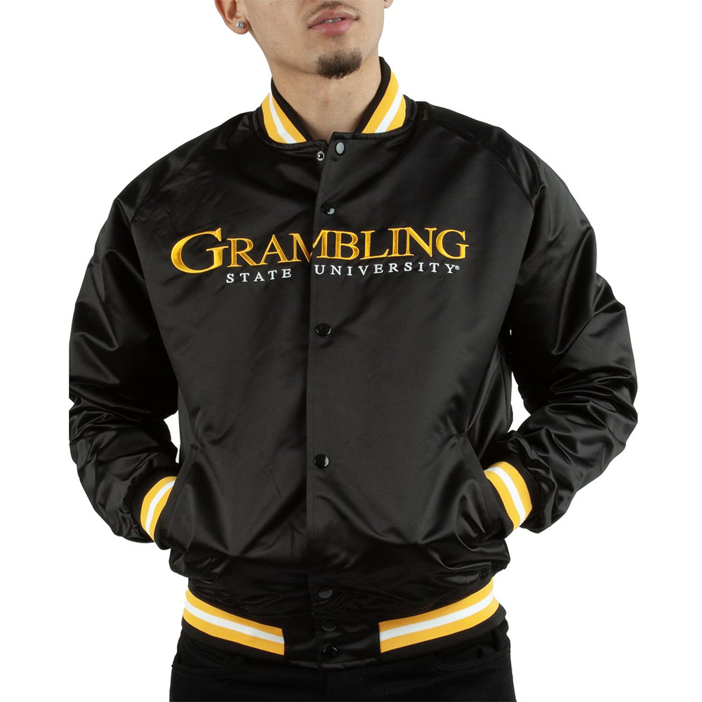 Black Grambling State University Lightweight Satin Full-Snap Jacket