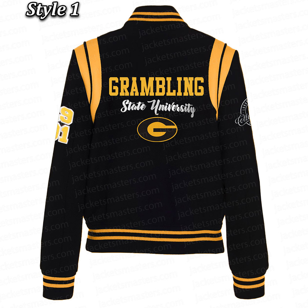 Grambling State University Full-Snap Black Wool Varsity Jacket
