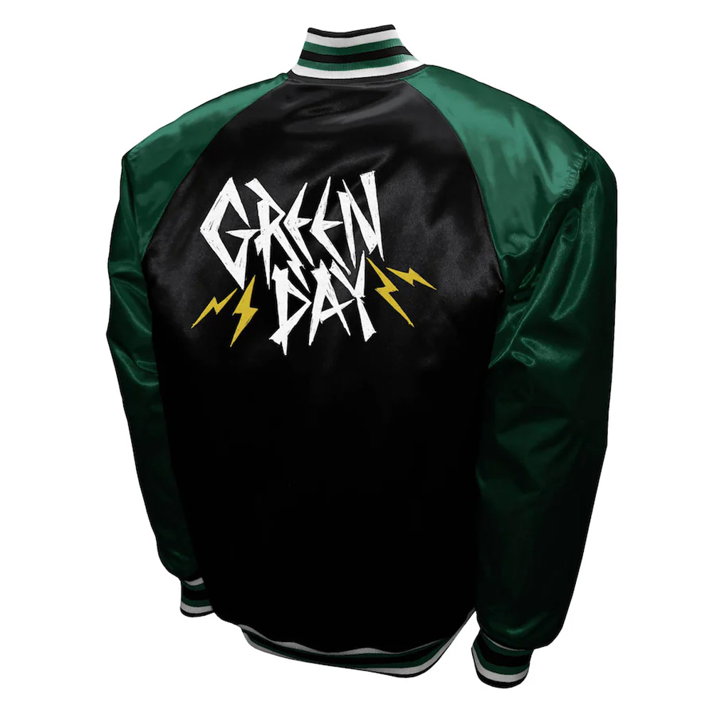 Green Day Power Full-Snap Black and Green Varsity Satin Jacket