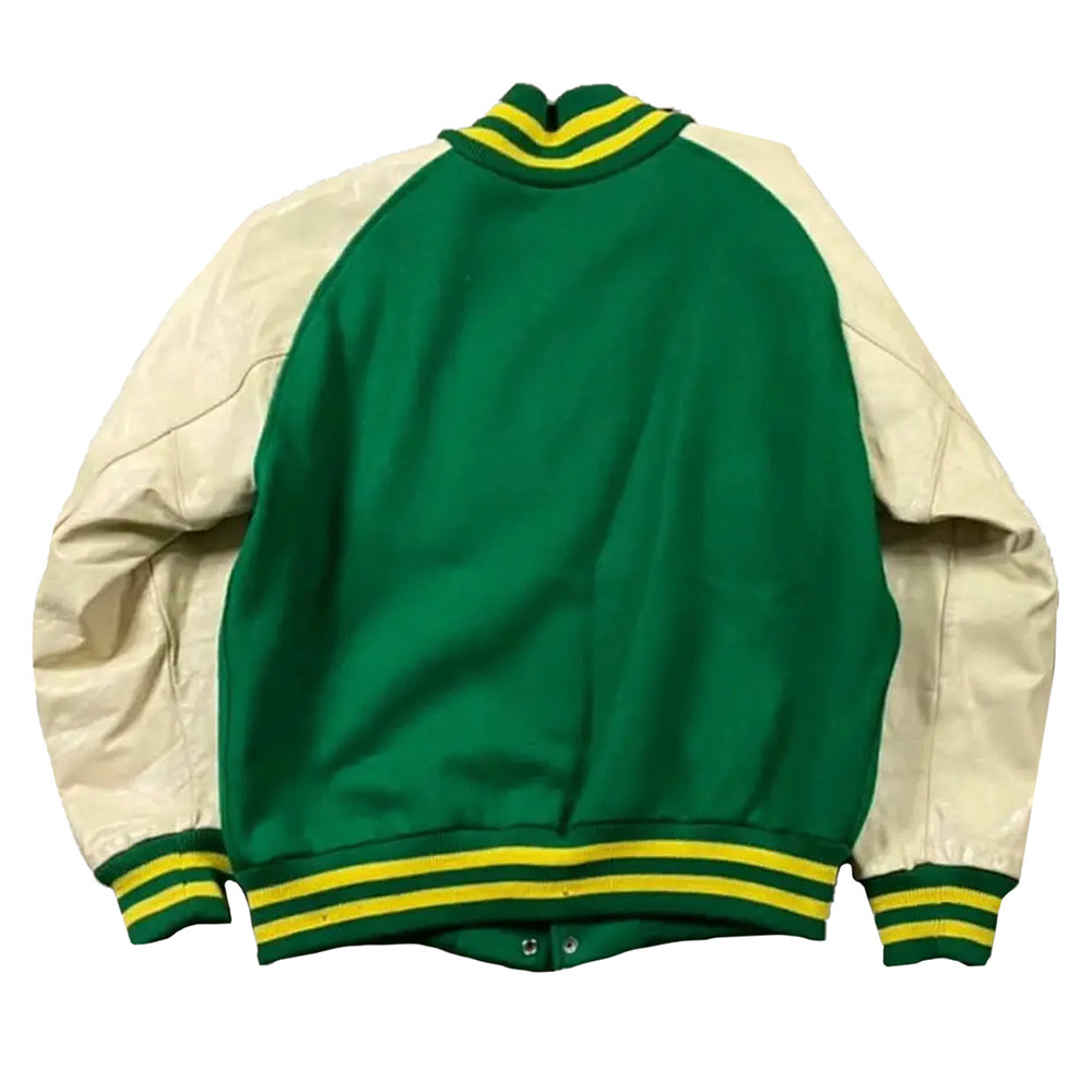Green and Cream O Letterman Wool/Leather Full-Snap Jacket