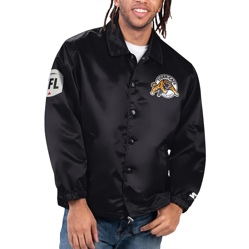 Black Option Route Hamilton Tiger-Cats Coaches Full-Snap Satin Jacket
