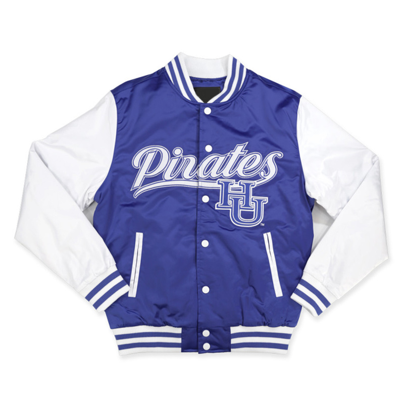 The satin construction brings you both luxurious durability and fashionable elegance through its high-grade satin fabric. A viscose lining inside operates to keep users comfortable throughout the day thus creating a perfect winter clothing solution. The rib-woven collar brings varsity charm to the Hampton University Blue and White Jacket while snap tabs lock it securely yet elegantly.
