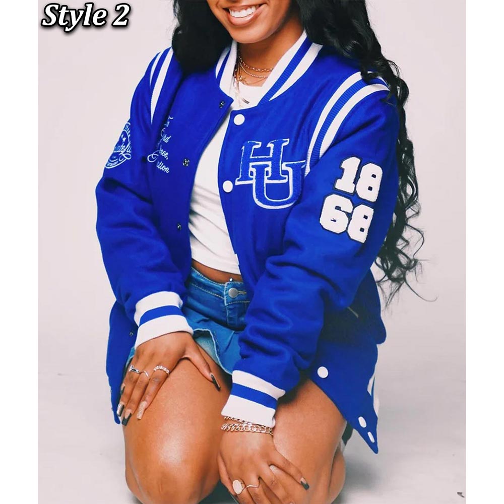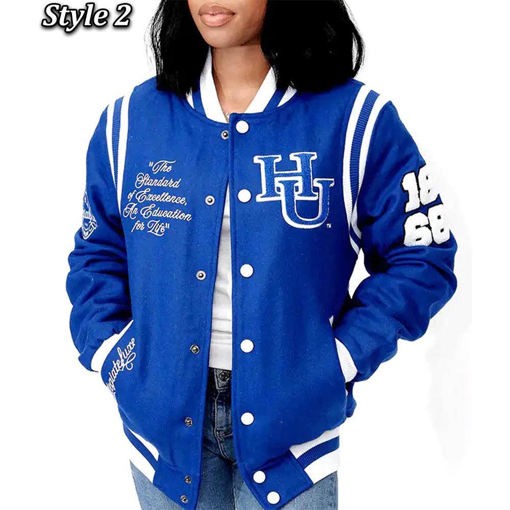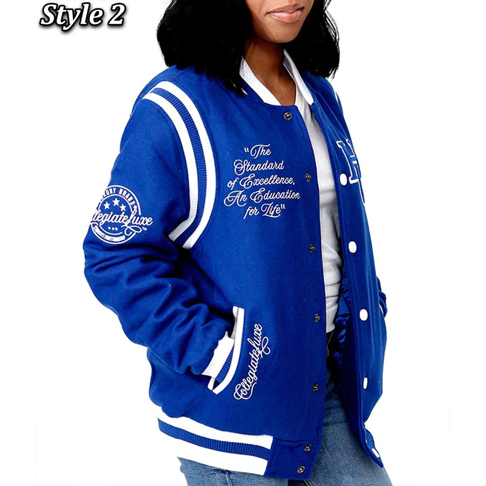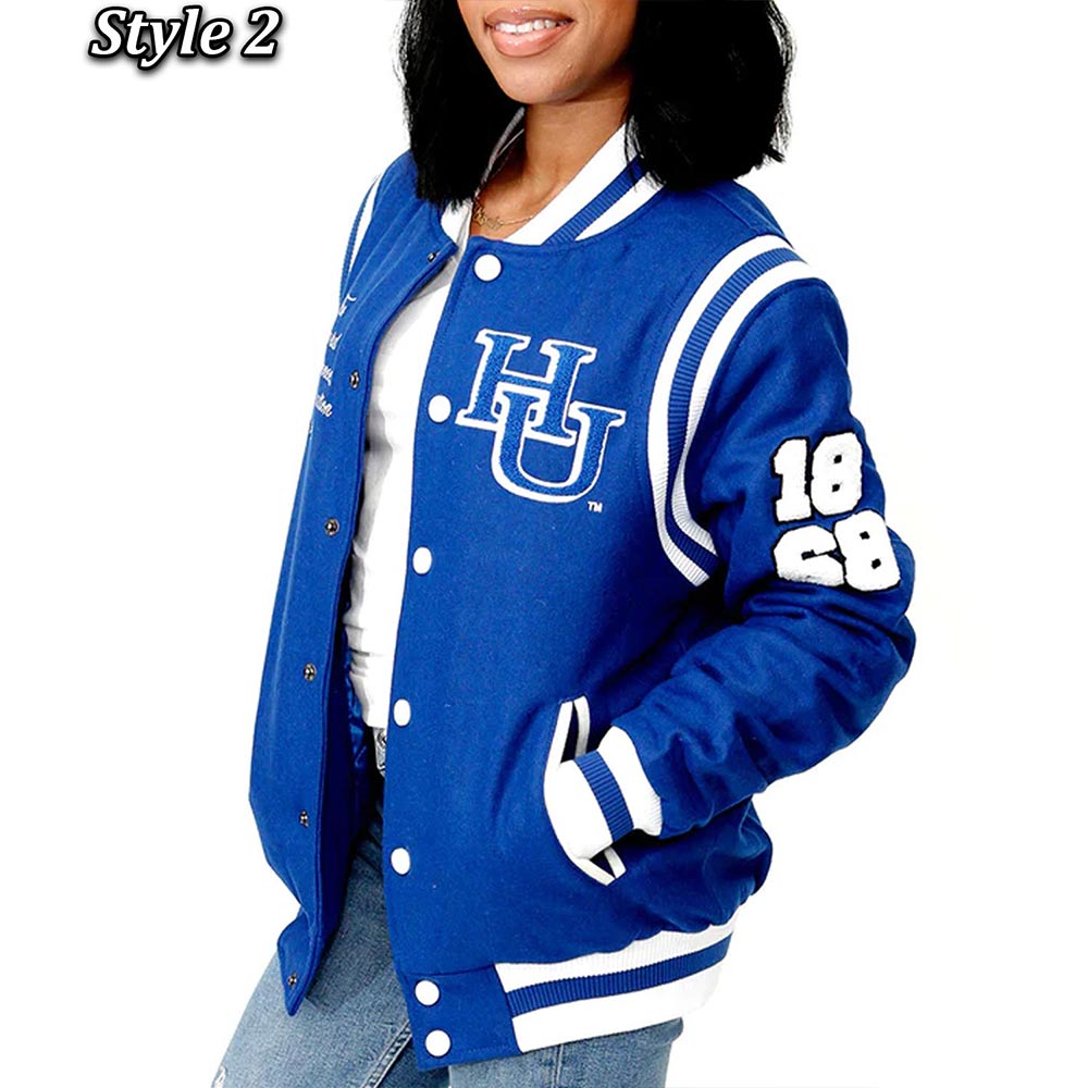 The Hampton University Royal Varsity Wool jacket is made up of high-quality wool. The jacket is available in glorious royal blue color, which gives it an innovative and attractive look. The jacket has an shirt style collar. It has branded YKK zipper front closure. A soft viscose inner lining of the jacket keeps you calm and relaxed. The sleeves of Hampton University Royal Varsity Wool jacket are long ends with rib-knitted cuffs. The jacket has two inner & two outer waist pockets for keeping stuff. The fine quality stitching of the Hampton University Royal Varsity Wool jacket makes it durable and desirable to wear. The jacket is an ideal choice for casual wearing.