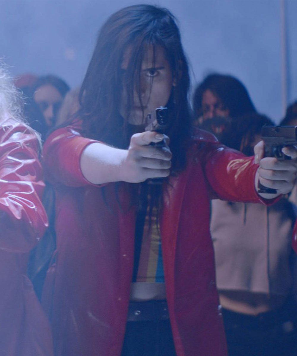 Bex Warren Assassination Nation Red Leather Long Jacket