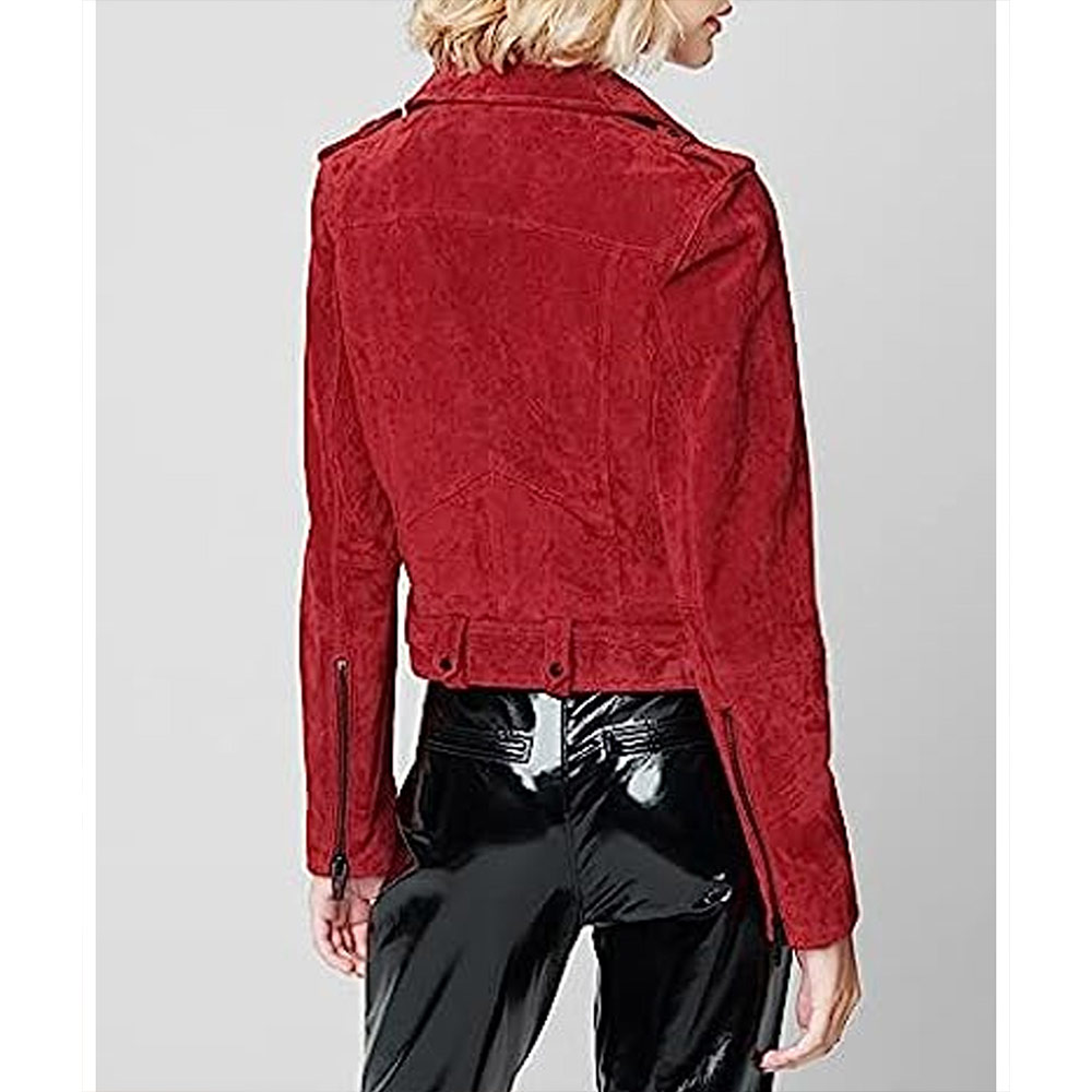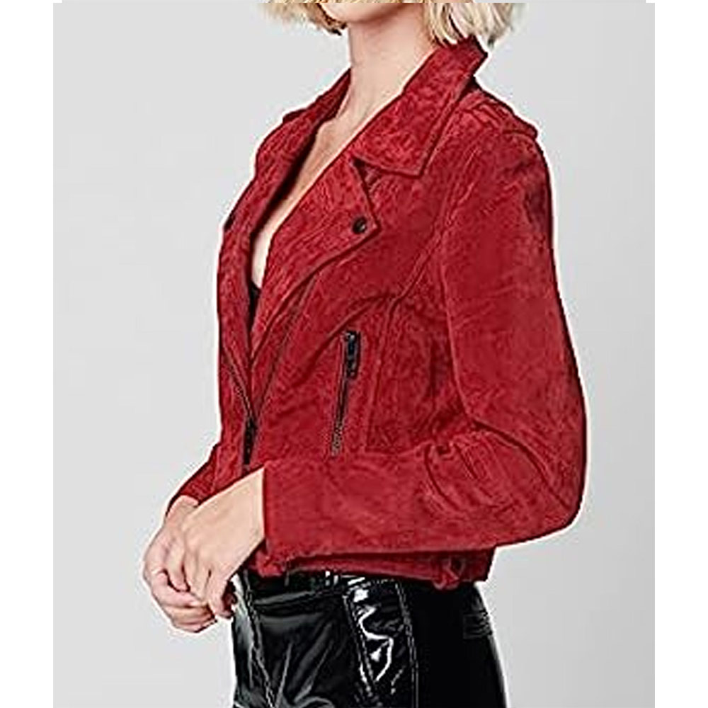 Experience the allure of the Alicia Adams Red Suede jacket, meticulously crafted from premium quality suede leather. Its glorious red color exudes elegance and innovation, creating a attractive and memorable look. This Head of the Class Isabella Gomez Red Suede jacket features a sleek lapel style collar and a branded YKK zipper front closure for a touch of sophistication and convenience. The soft viscose lining offers warmth and relaxation, while the long sleeves with zipper cuffs ensure a comfortable and refined fit. With two inner and two side pockets, this Alicia Adams Red Suede jacket provides practicality and functionality. The fine quality stitching guarantees comfort and desirability, making it the ideal choice for party goers and style enthusiasts alike.