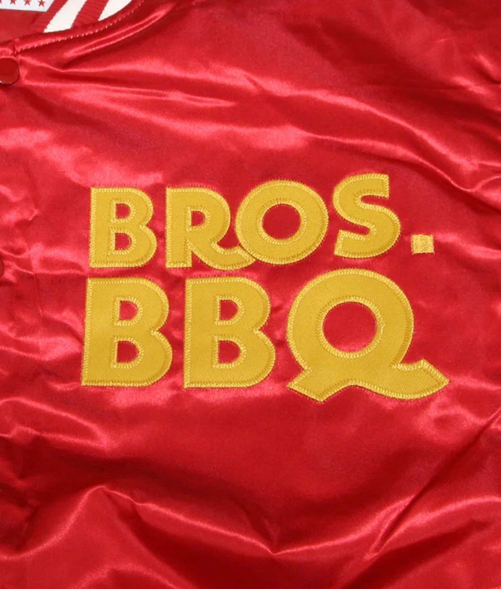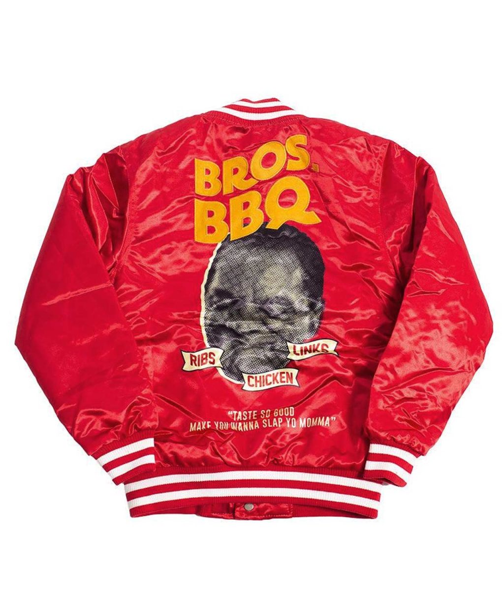 Indulge in sophistication with our Bros BBQ jacket, a timeless piece that exudes elegance and flair. Crafted from premium satin, this jacket is designed to elevate your style and make a statement wherever you go. Suitable for all genders, this jacket features a full-snap front closure for easy wear and a classic rib-knit collar and cuffs for a tailored fit. The vibrant red hue adds a pop of color to any ensemble, while the bold graphic print on the chest and back adds a touch of personality and flair. The inner lining of the Headgear Classics Bros BBQ Red satin jacket is smooth and luxurious, ensuring maximum comfort and a luxurious feel against the skin. The rib-knitted hemline provides a snug fit, while the long, fitted sleeves offer a sleek silhouette. EWith fine quality stitching throughout, this jacket is built to last, ensuring durability and longevity for years to come. Whether you’re dressing up for a special occasion or adding a touch of glamour to your everyday look, our Bros BBQ jacket is sure to turn heads and make a lasting impression.
