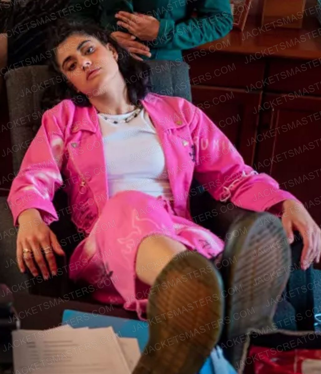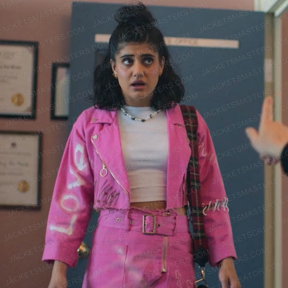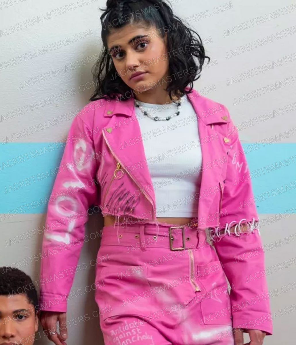 Heartbreak High Ayesha Madon Cropped Pink Leather Jacket