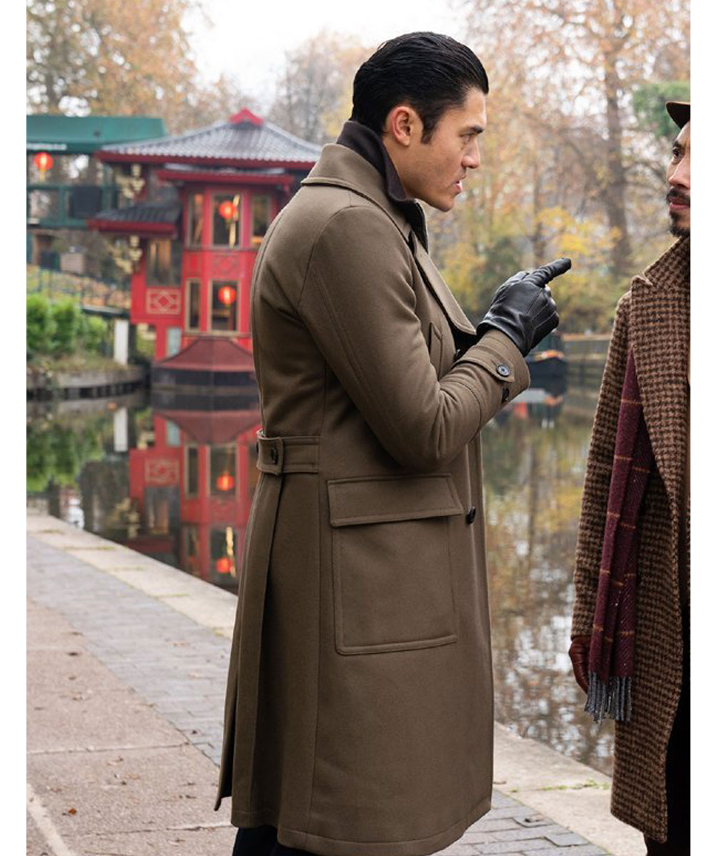 Henry Golding The Gentlemen Dry Eye Brown Double Breasted Coat