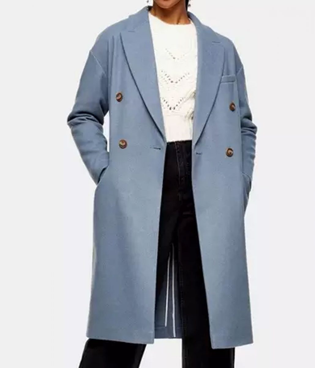 The How I Met Your Father Sophie coat is made from high-quality wool. The coat is available in a glorious blue color which gives it an innovative and attractive look. The collar of the coat is lapel style. It has a buttoned front closure giving it an attractive look. A soft viscose inner lining of the coat keeps you warm and relaxed. The sleeves of the How I Met Your Father Hilary Duff coat are full-length ends with open hem cuffs. There are three outside pockets and two inside pockets for keeping stuff. The fine quality stitching of the How I Met Your Father Sophie coat makes it durable and desirable to wear. The coat is an ideal choice for parties and stylish women.
