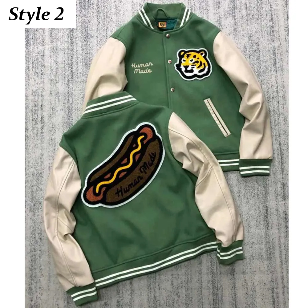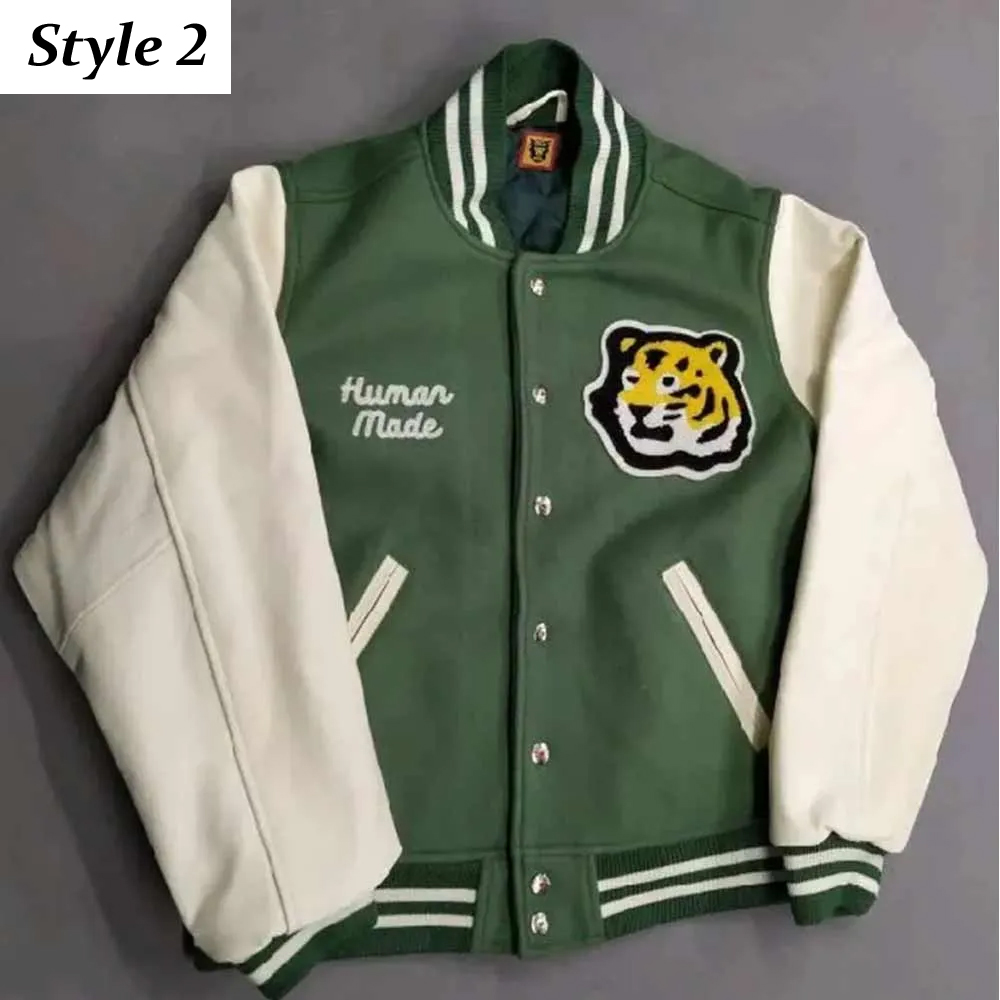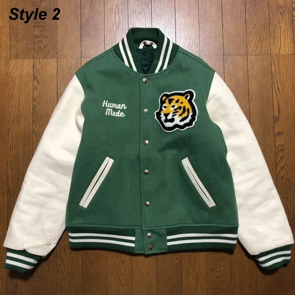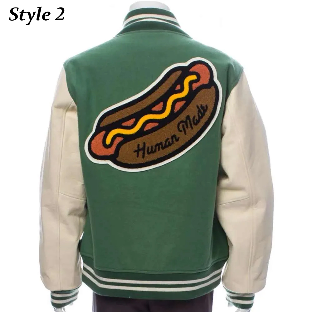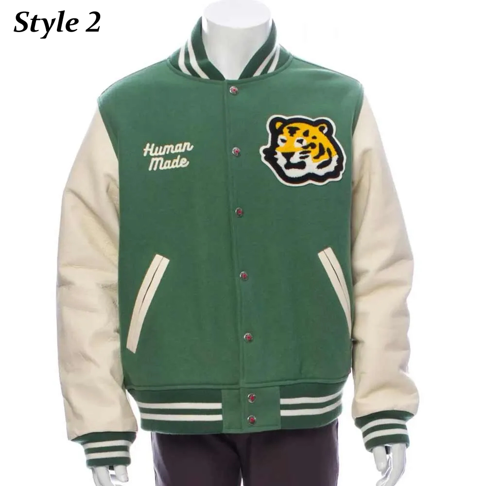 Human Made Hot Dog Tiger Green and White Varsity Jacket