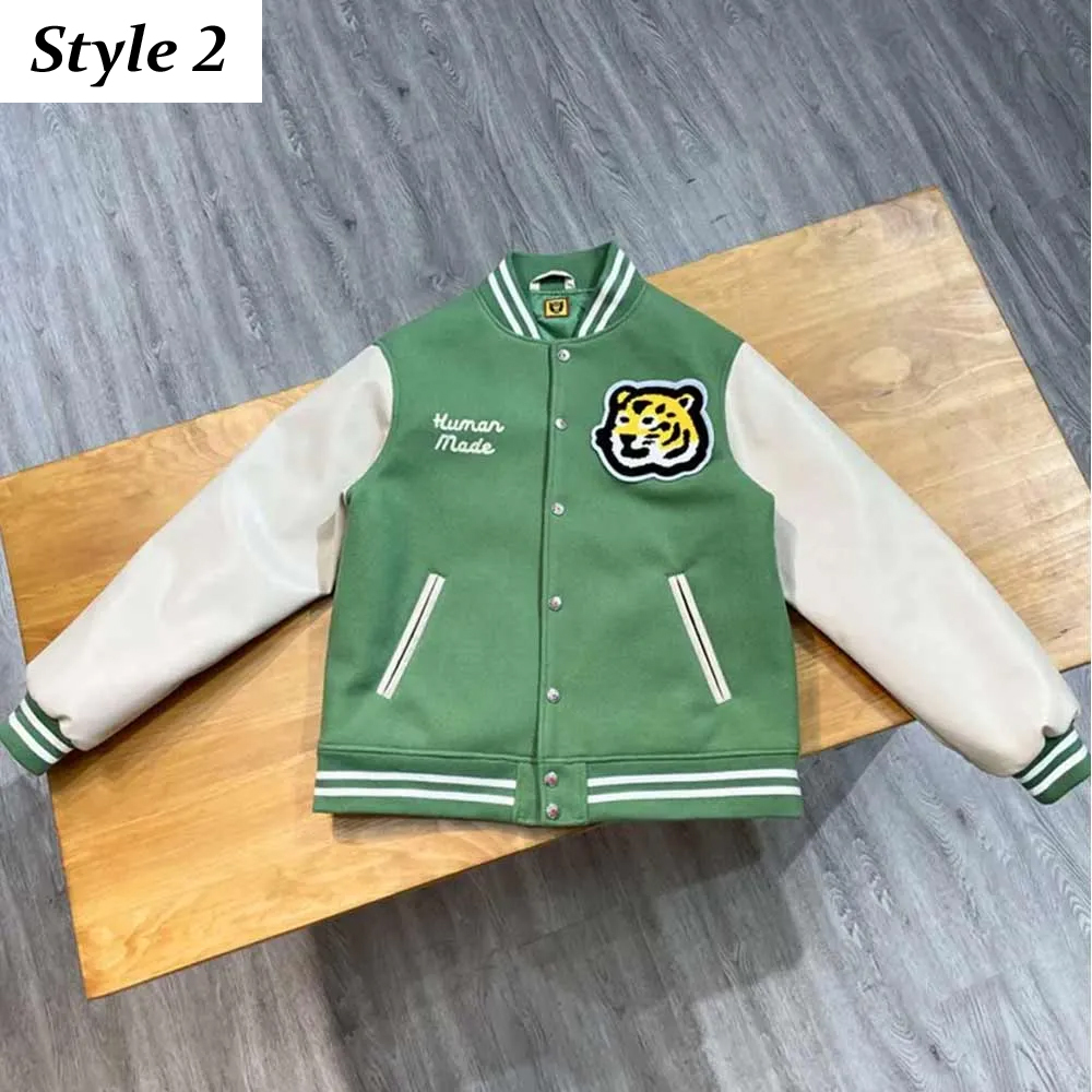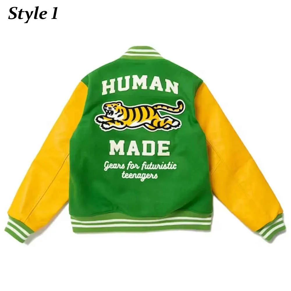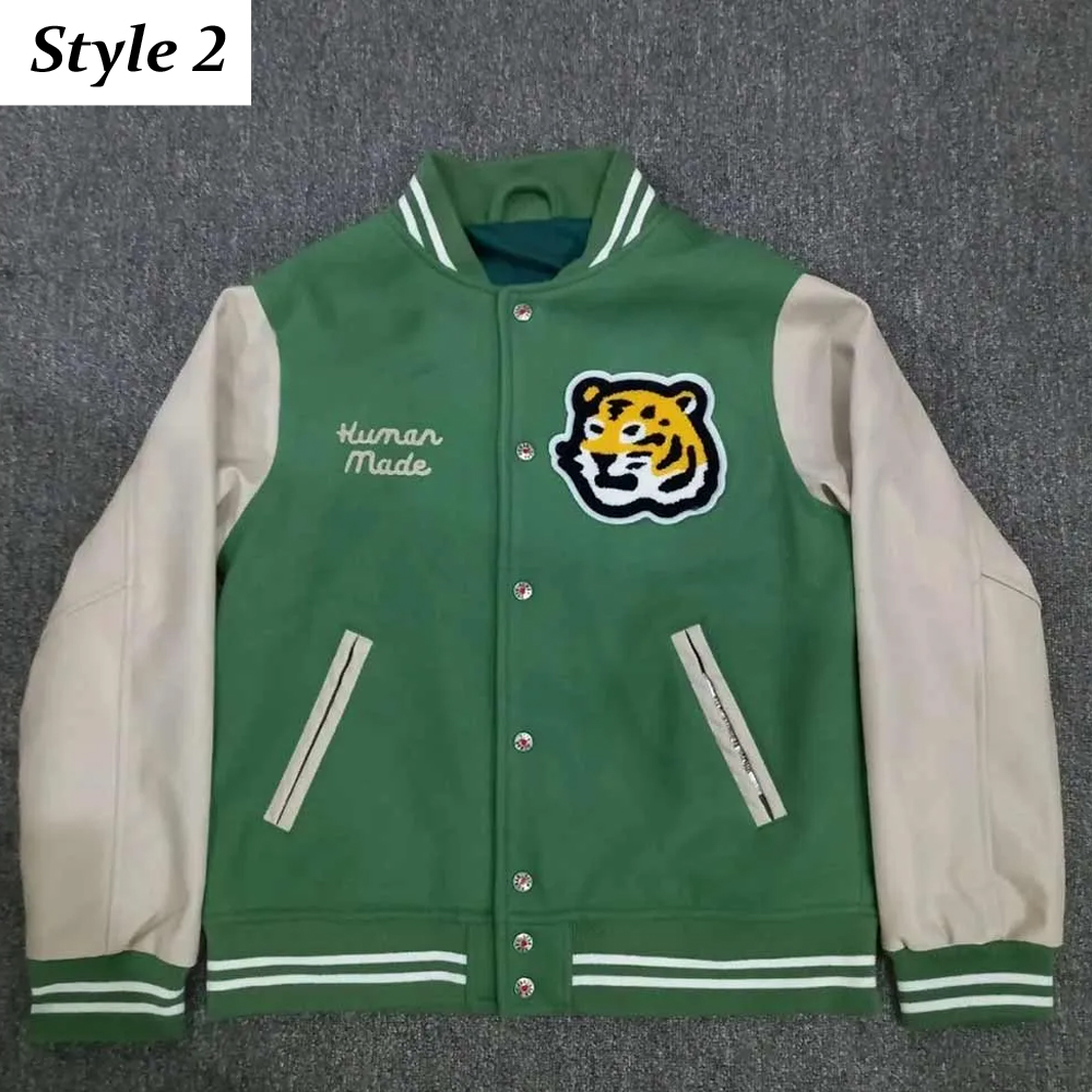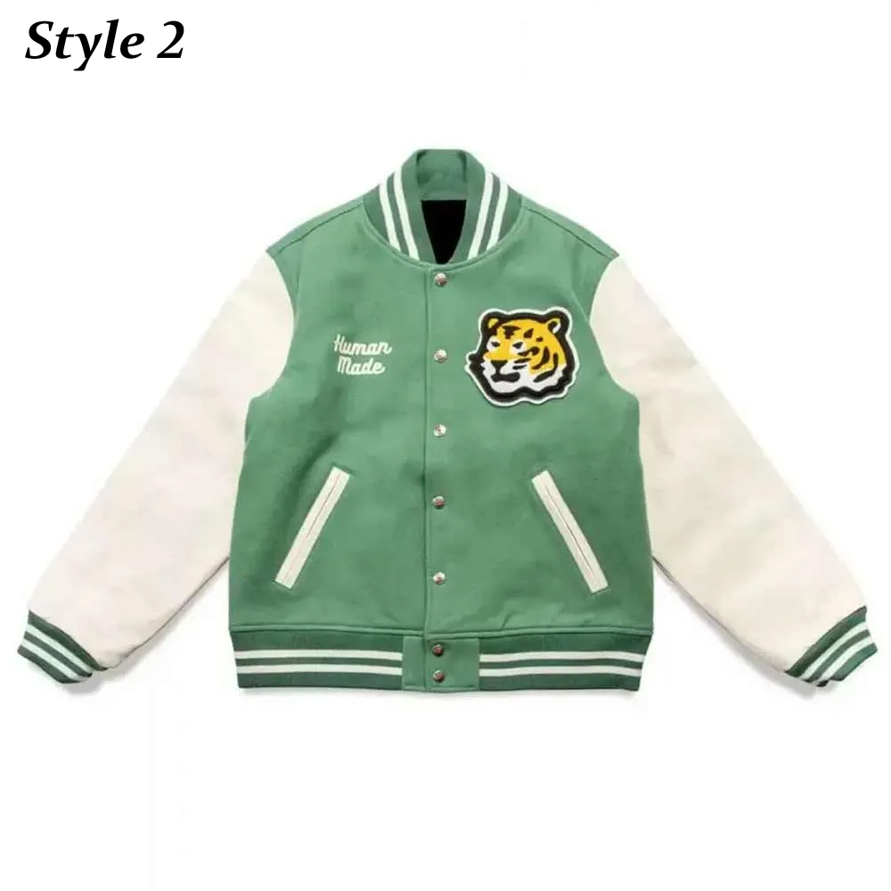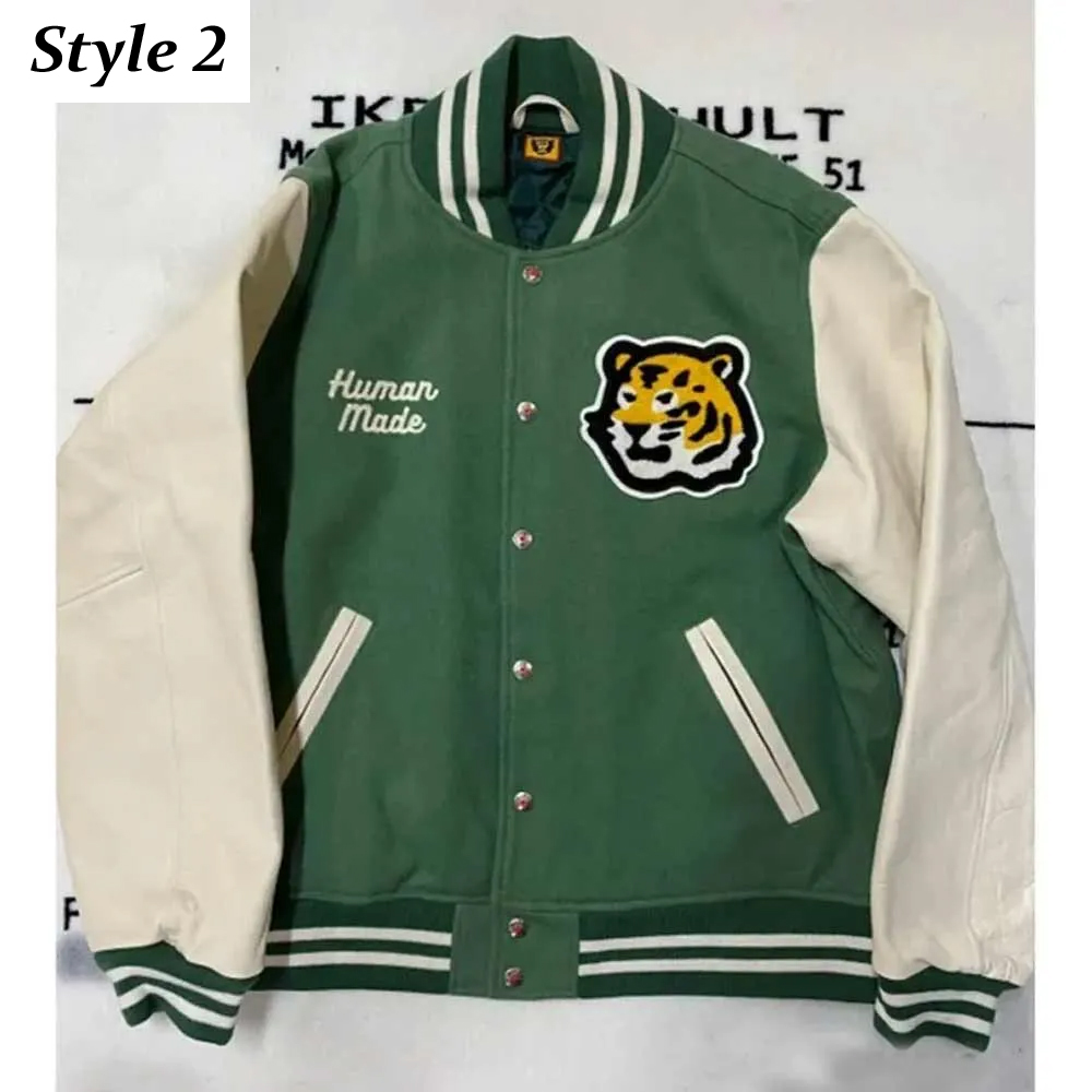 Human Made Hot Dog Tiger Green and White Varsity Jacket