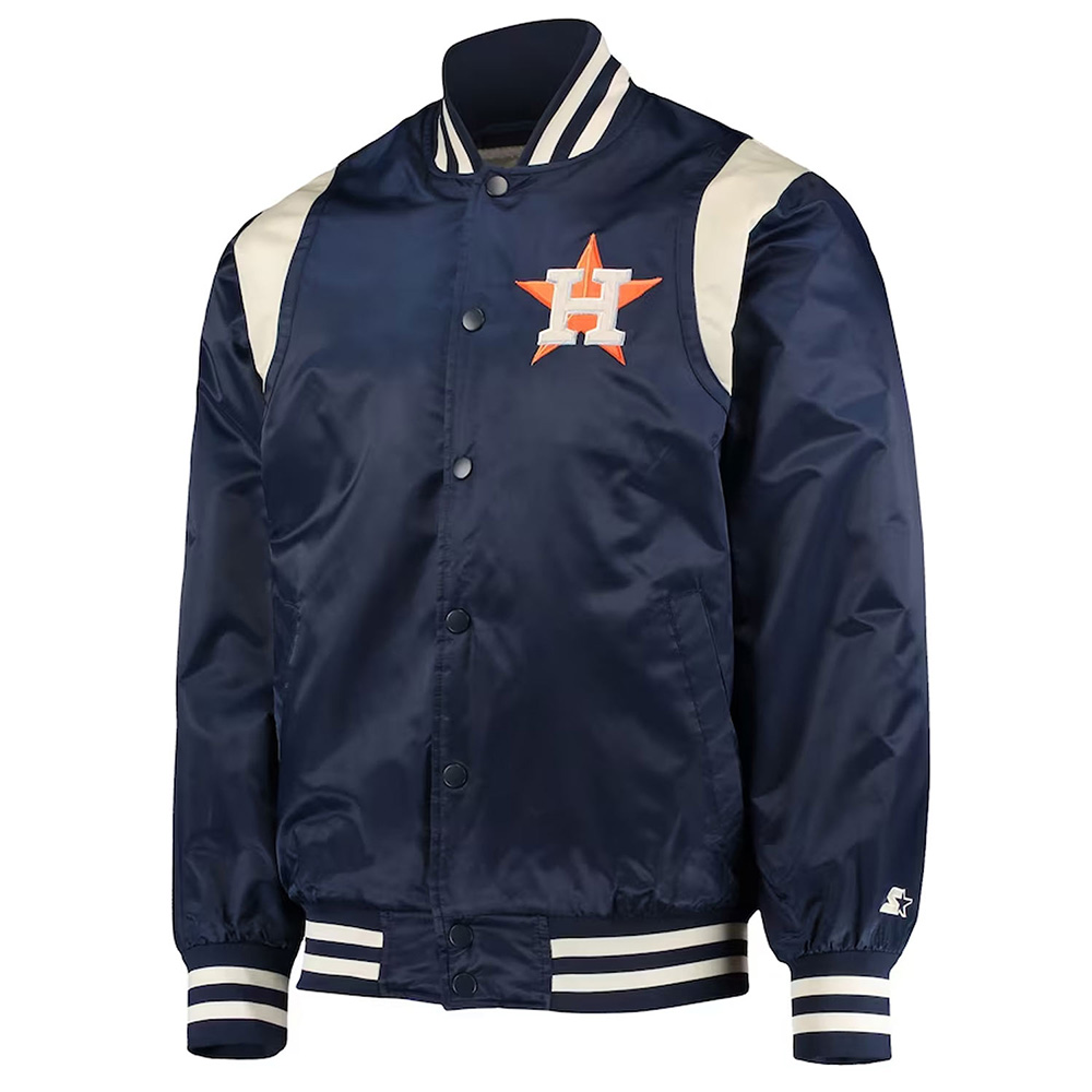 Starter Navy/Cream Houston Astros Full-Snap Varsity Satin Jacket