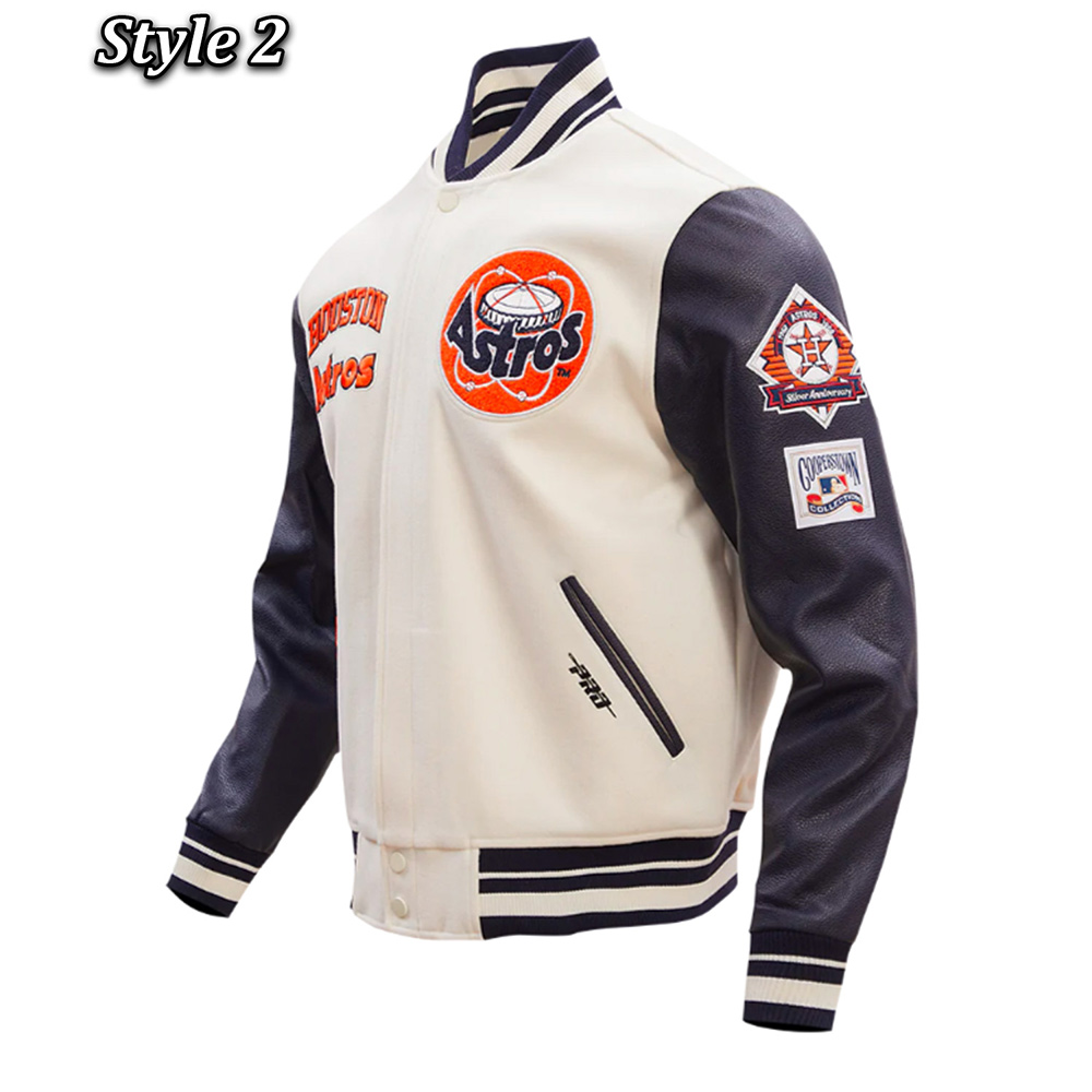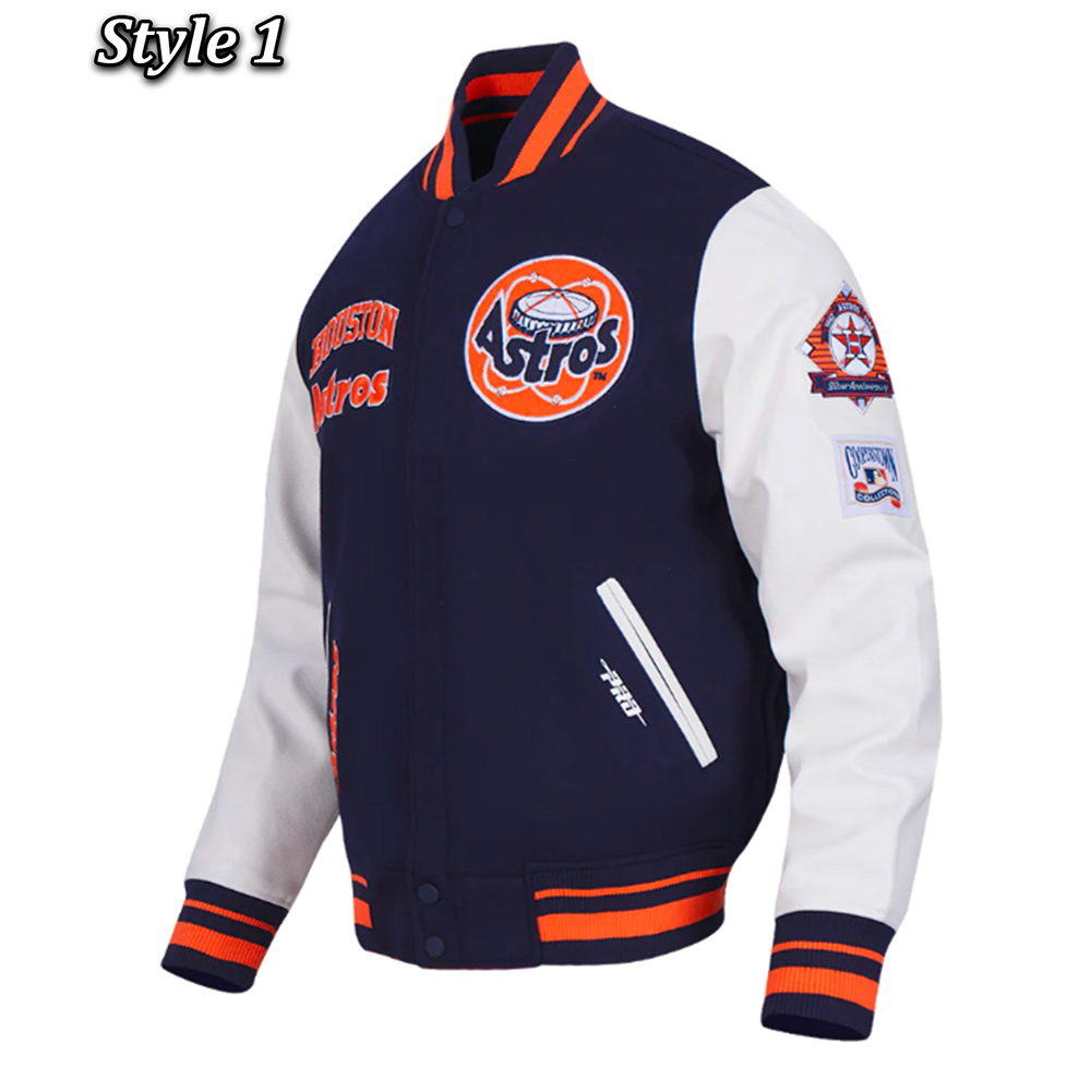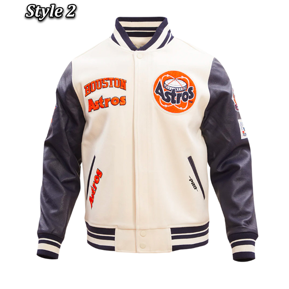 The Houston Astros Retro Varsity Jacket is an accessory that any fan of the Houston Astros baseball team should definitely own. This jacket is unisex in design hence it is suitable for both men and women with the design incorporating both the traditional and the contemporary styles. The outer shell is made of wool, and the sleeves are made of leather that gives the jacket a hard wearing yet soft feel. The interior of the jacket is made of soft viscose fabric that gives it a comfortable feeling to wear. The collar, cuffs, and the bottom part of the Houston Astros Retro classic rib Varsity Jacket is made of rib-knitted fabric which imparts the look of a traditional varsity jacket and a comfortable fit. It has a zip opening combined with a snap-fastened flap for added utility and design. Located on the sides of the waist, there are two pockets for the hands and one inner pocket for storing things.