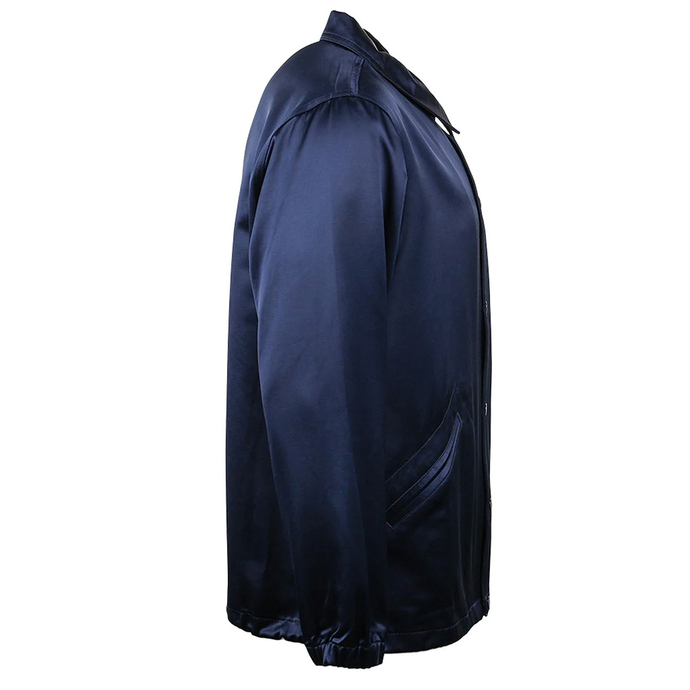 Sewn from the finest satin, this jacket incorporates a viscose lining to enhance the comfort and sustainability of the jacket. This garment is easy to care for, and the navy blue color gives it a sophisticated feel. Thus, it would be suitable for any occasion.