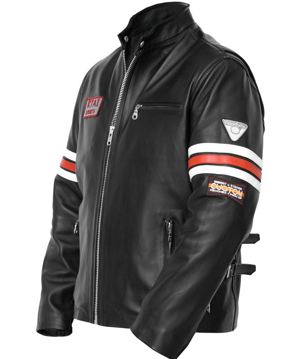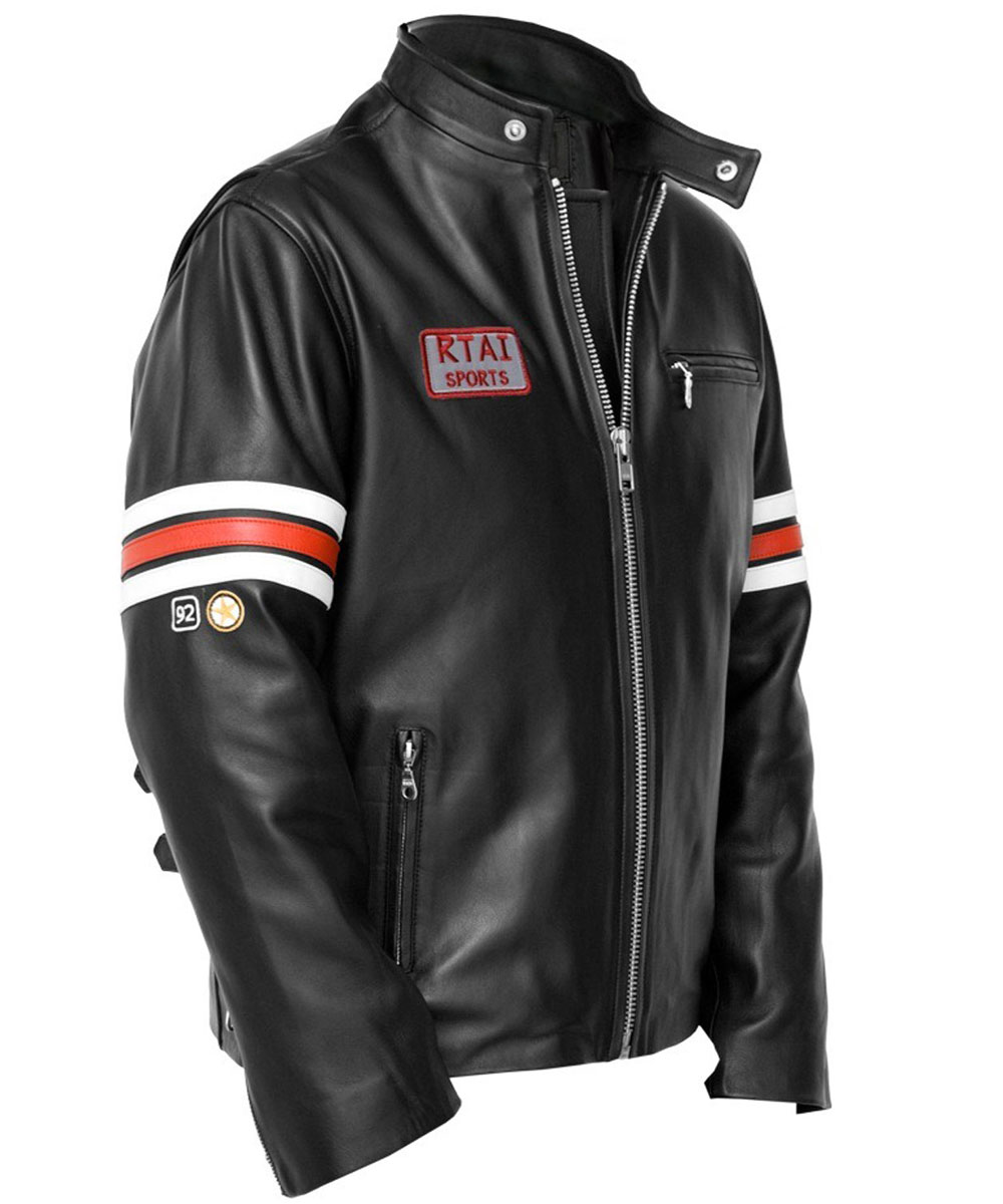 The outside of the Dr House Jacket is fabricated from high quality genuine or faux leather while its inside has a soft viscose lining for warmth and comfort. The black jacket has a snap tab collar with a YKK zipper closure. The sleeves of the Gregory House Leather Jacket are long and fitting with red and white strips and open hem cuffs . To accommodate things the jacket has two side waist zipper pockets and one chest zipper pocket. The RTAI sports tag and belt strapped waist are the alluring features of Hugh Laurie House Leather Jacket. Fine quality stitching of jacket adds to its perfection.